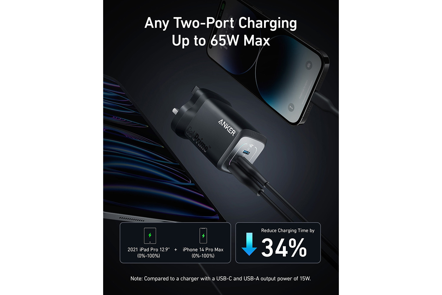 65W Max Two-Port Charging: