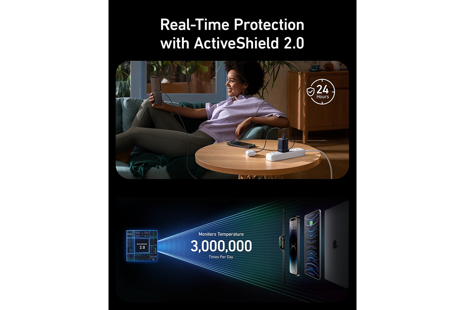 ActiveShield 2.0 safety system delivers secure and protected charging, allowing you to power your devices confidently.