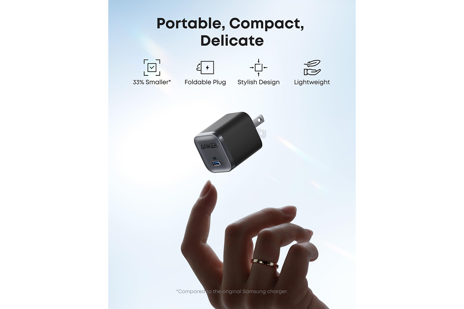 Compact and foldable 56% smaller than the original 30w charger
