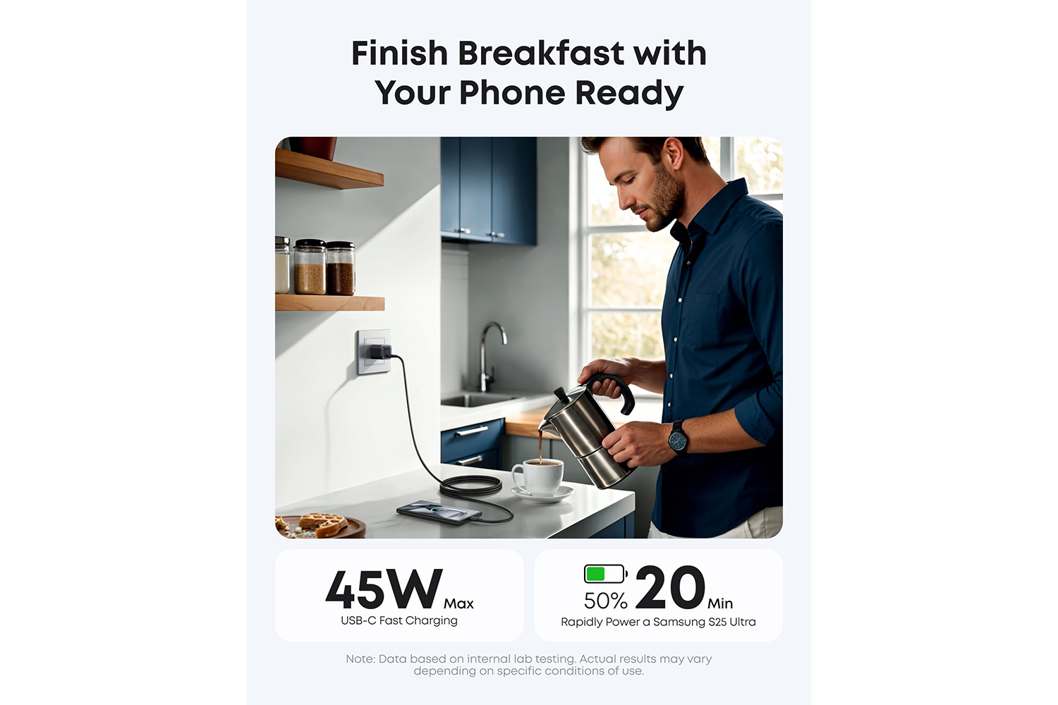 Note: Data based on internal lab tests, charging time applies to iphone 17/17 pro/17 pro max. not compatible with iphone 17 air