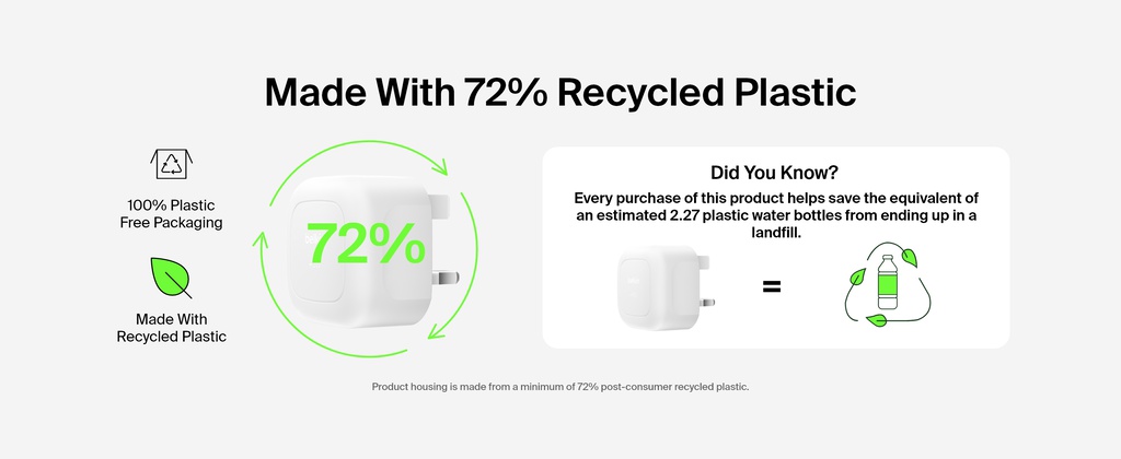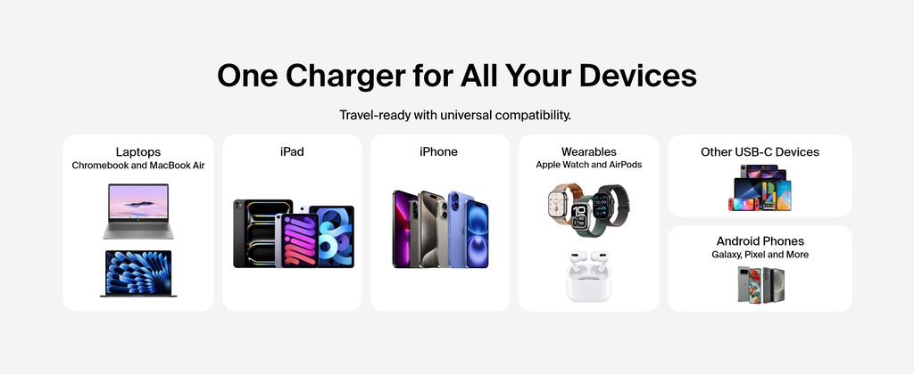 Fast charge iPhone 16 Pro from 0-50% in 28 minutes or Samsung Galaxy S23 from 0-50% in 30 minutes.