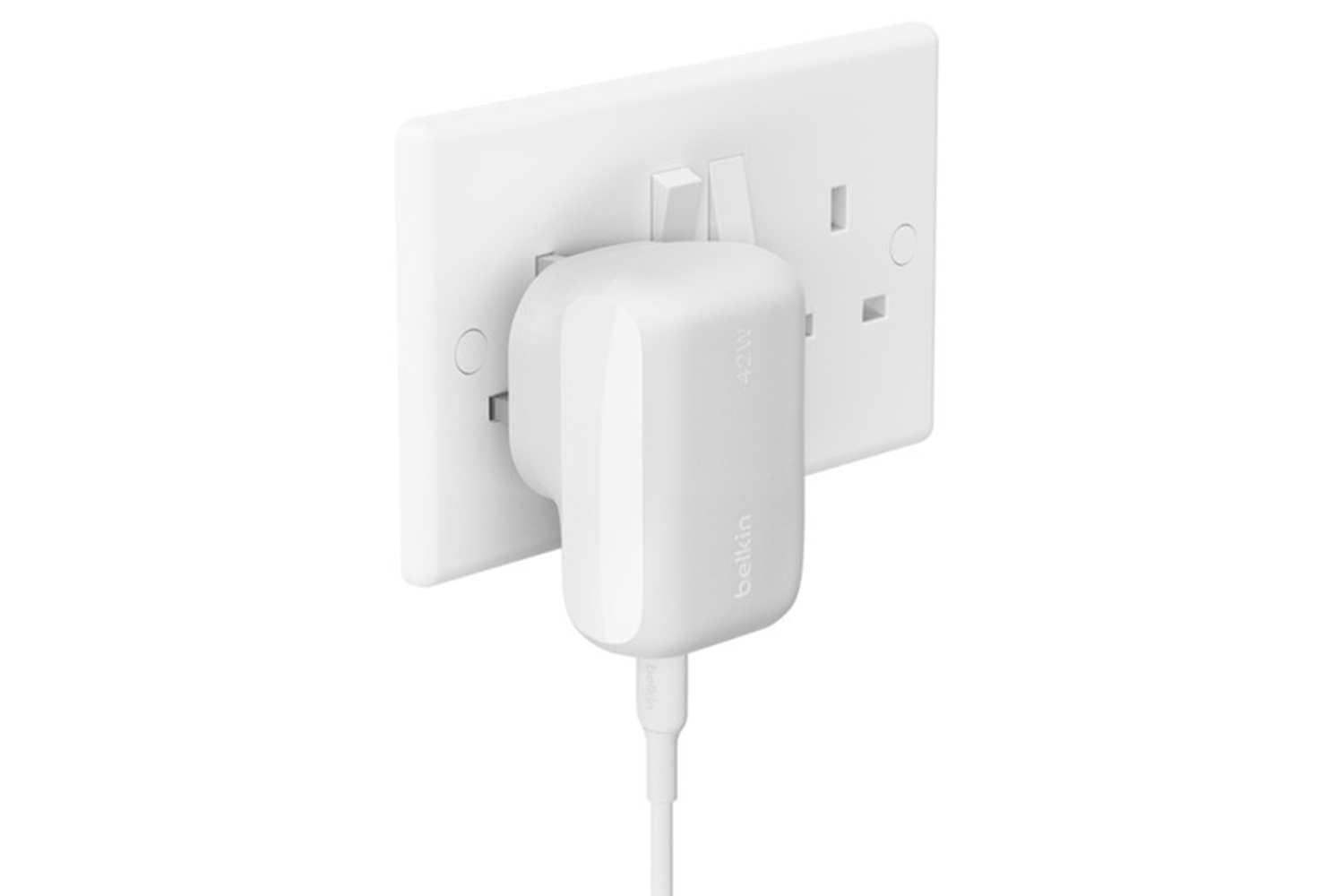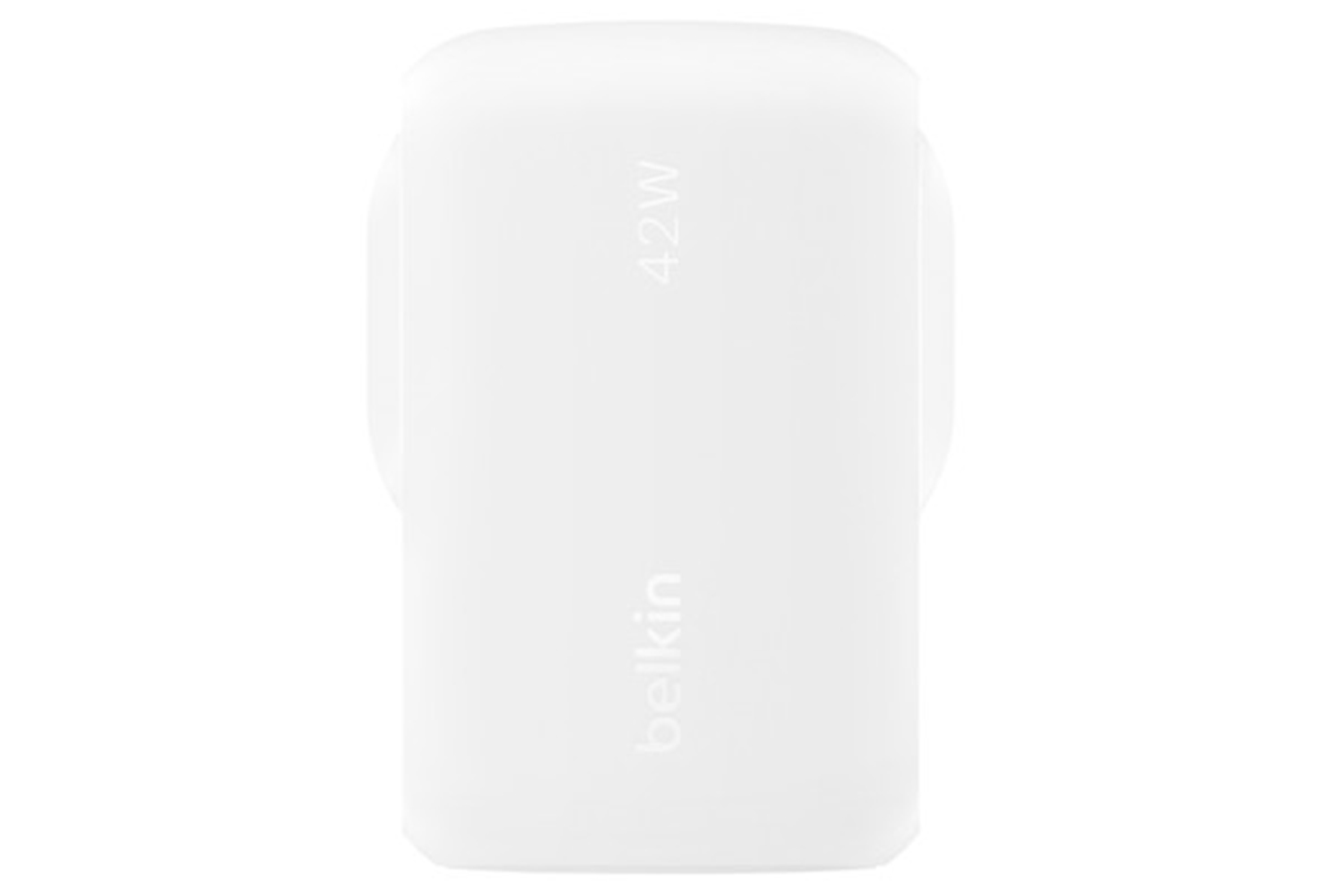 Fast charge an iPhone or Samsung smartphone while you charge another device at the same time with Belkin Dual Wall Charger 42W. Dual ports include a 30W USB-C port and a 12W USB-A port. It’s USB-C PD 3.0 certified to deliver fast charging of 0-50% in 21 minutes for iPhone† or 0-50% in 26 minutes for Samsung††.