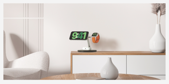 This 3-in-1 magnetic charger supports StandBy to style your iPhone as you'd like, allowing Apple users to mount their phone and enjoy StandBy features while working or relaxing. View the time in the office, bedroom and more.