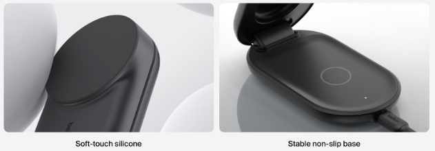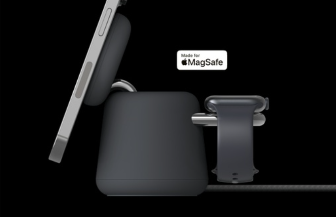 Power your iPhone from 0-50% in just 25 minutes. Featuring ChillBoost active cooling technology, a proprietary technology that regulates device temperature during fast charging. Safely fast charge up to three devices (iPhone, Apple Watch and AirPods) simultaneously with Qi2 25W or MagSafe 25W technology.