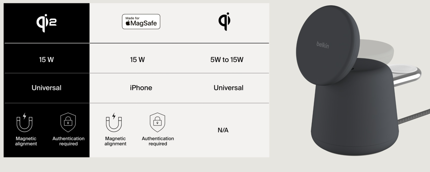 • Powered by Qi2 25W Certified technology
