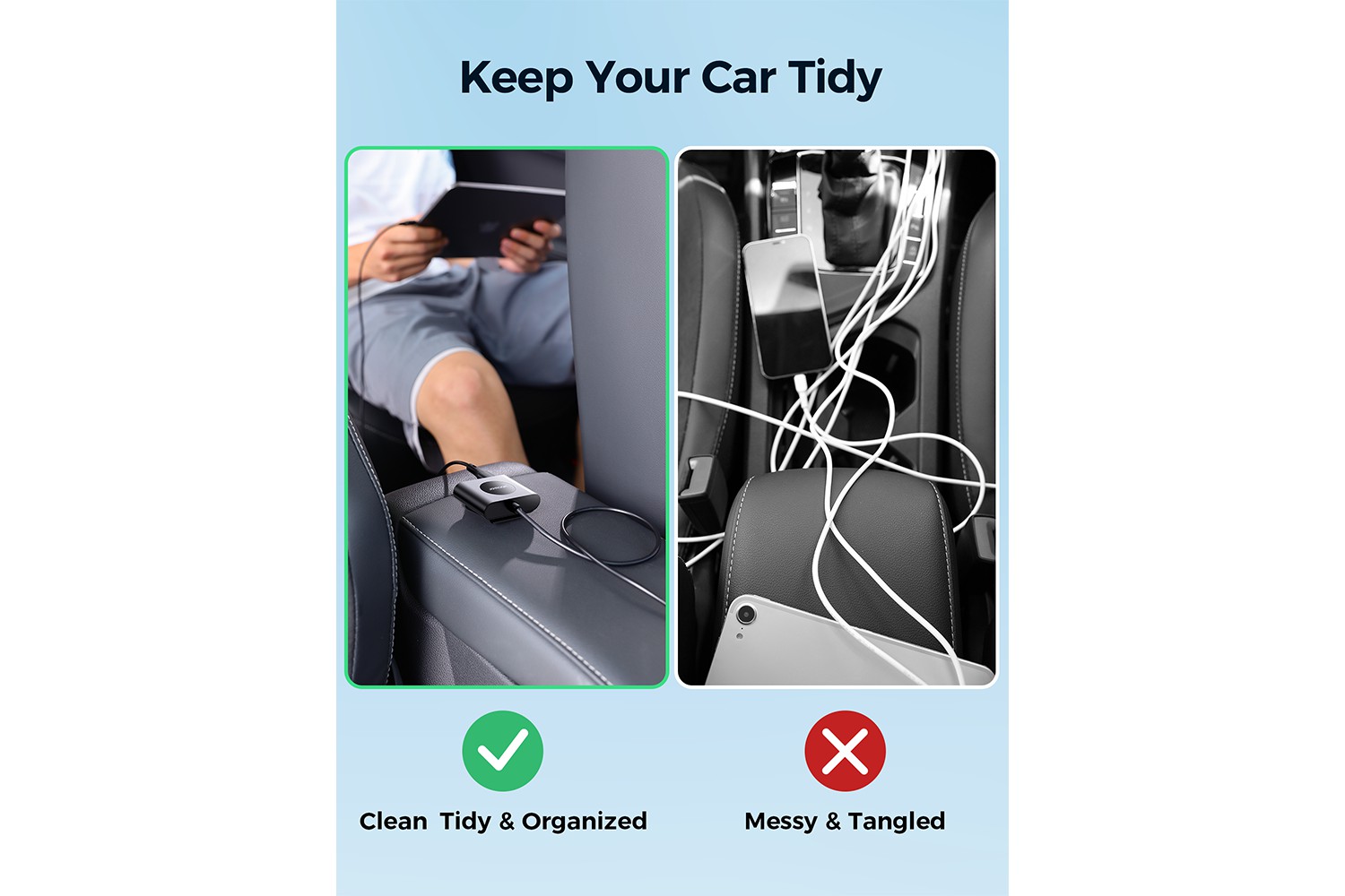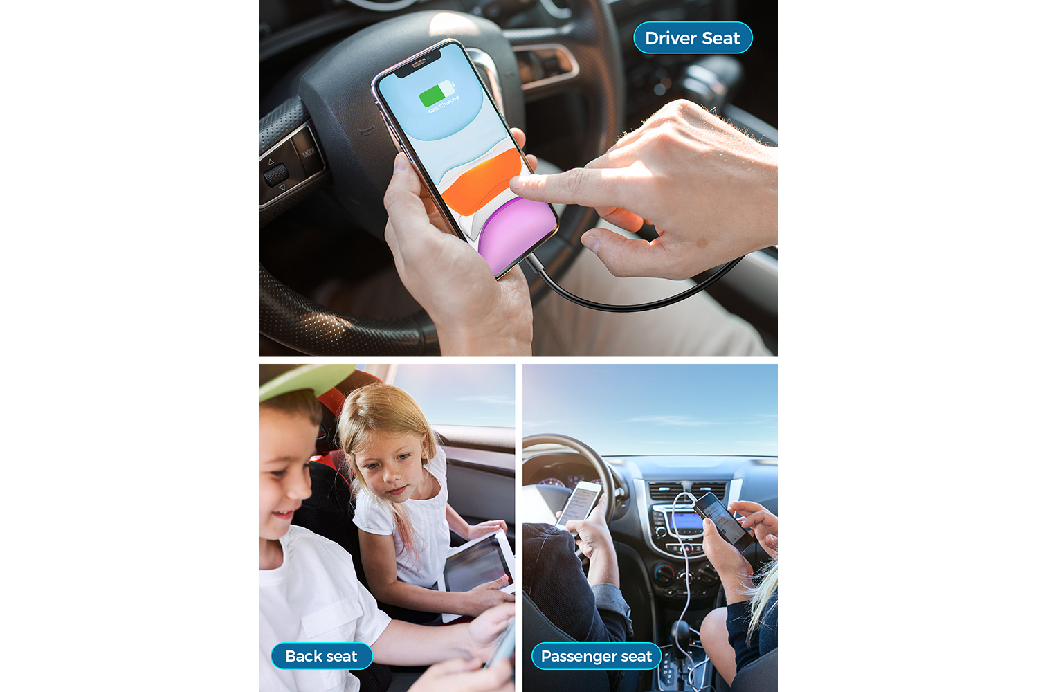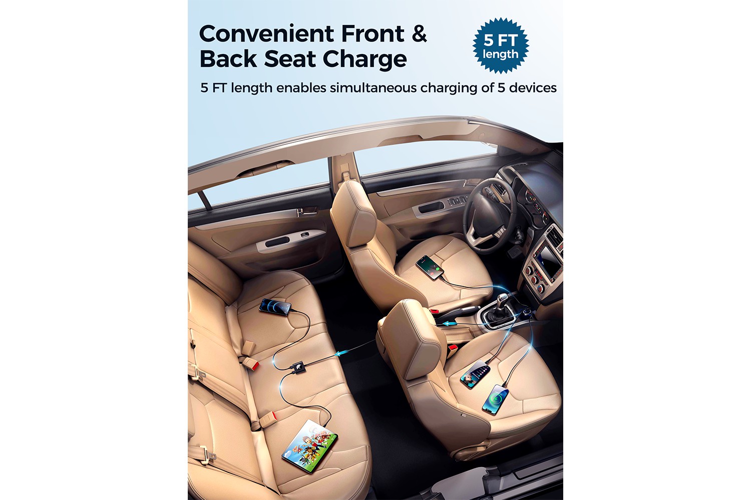 • 1.5m extended cable, easy to charge the devices from front to back seat.