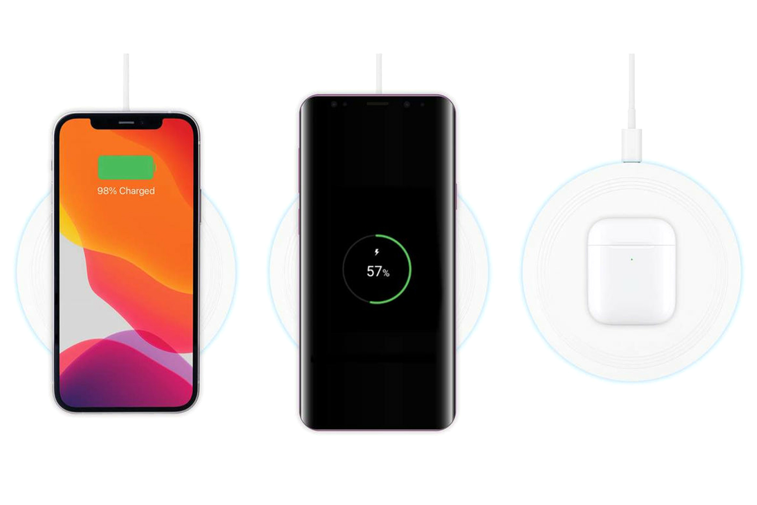 - Wirelessly fast-charges Qi-compatible devices - phones, cases, earbuds, smartwatches and more - with power up to 15 W