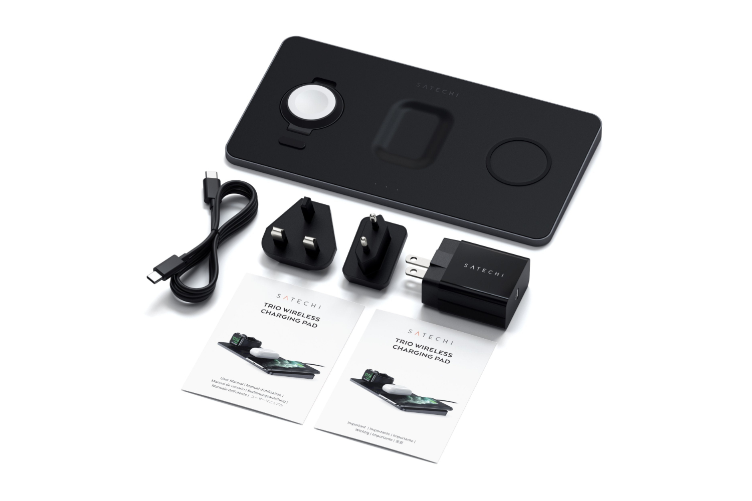 The Satechi Trio Wireless Charger with Magnetic Pad simplifies wireless charging with a convenient place for all your devices – so you’ll never be without a charge. With faster-charging technology and intelligent safety features, the Charging Pad quickly powers a Qi-enabled smartphone, Apple Watch, and AirPods Pro all at the same time.