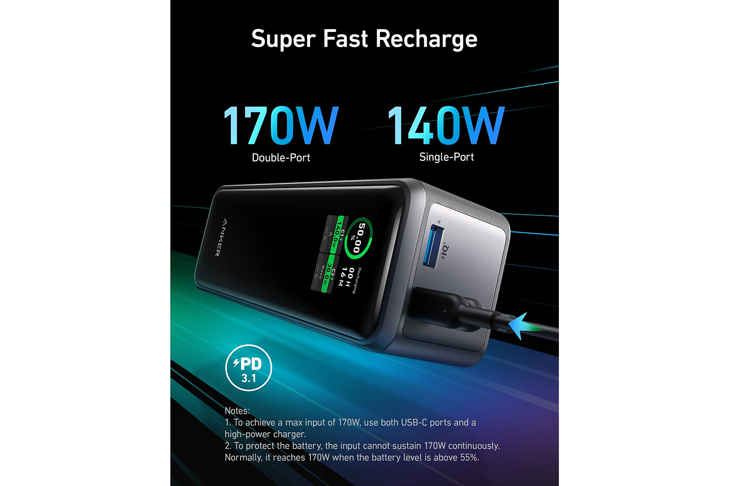 Recharge your power bank at lightning speed with the convenience of dual USB-C ports, allowing you to fully replenish it in just 37 minutes.