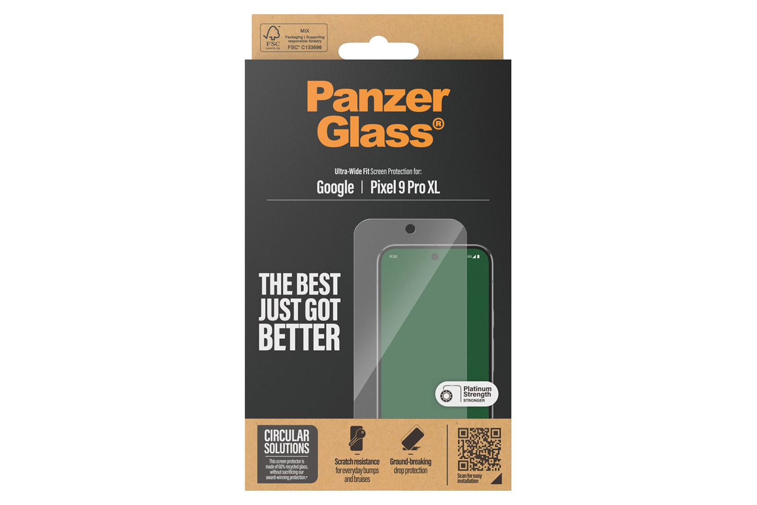 The screen protector is Ultra-Wide Fit, which means that it covers the front surface of your phone, providing a complete and crystal-clear view of your screen while still leaving a little room around the edges for a PanzerGlass case. If you want 360-degree phone protection, combine the screen protector and case with a PanzerGlass PicturePerfect or Hoops camera lens protector.