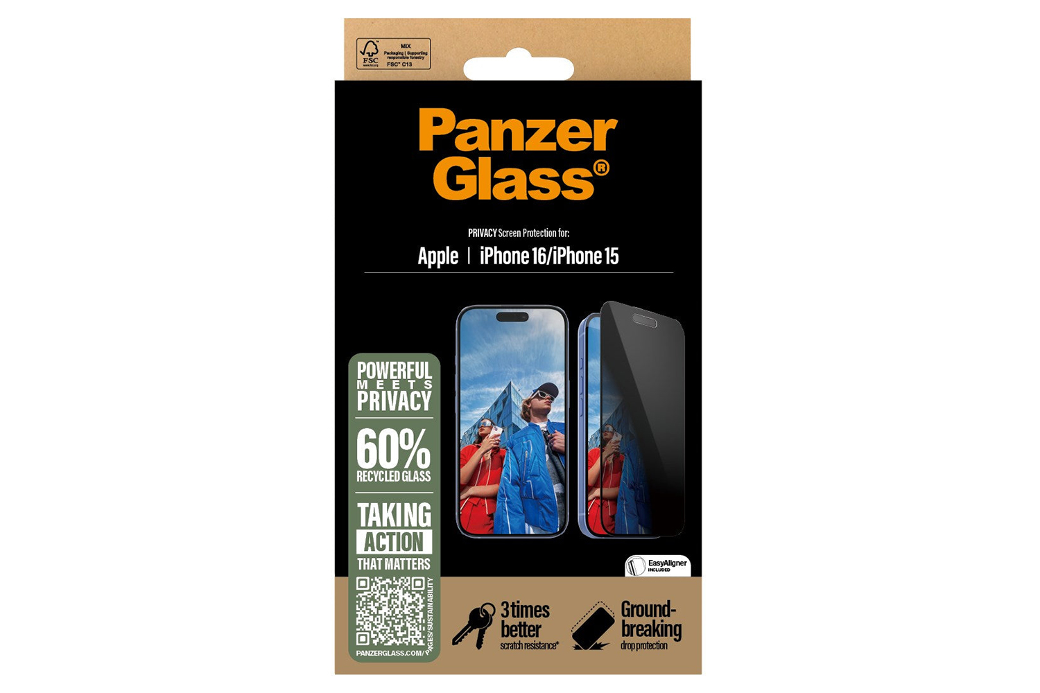 With the enclosed EasyAligner made of 100% recycled plastic, installation is a piece of cake (seriously!). To make it even easier, we've included step-by-step instructions as well as a QR code for quick access to PanzerGlass online how-to video. And remember: Once installed, you'll never again fear your phone falling screen-first. This might not happen, but then again it might.