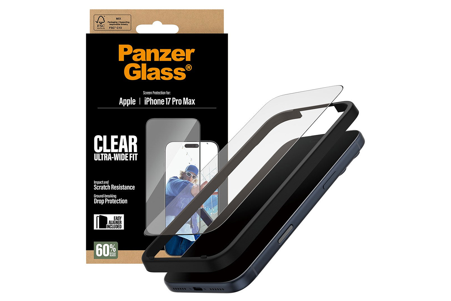 This screen protection prolongs the lifetime of your phone so that one day you can pass it on to someone else who will love it just as much as you do. It’s the new circle of phone life and one way of working toward a more sustainable future. Another is to use less packaging. In 2024, we reduced the amount of paper in panzerglass core product packaging design by an average of 66%*. So, of course, this product comes in a recyclable FSC-certified box.