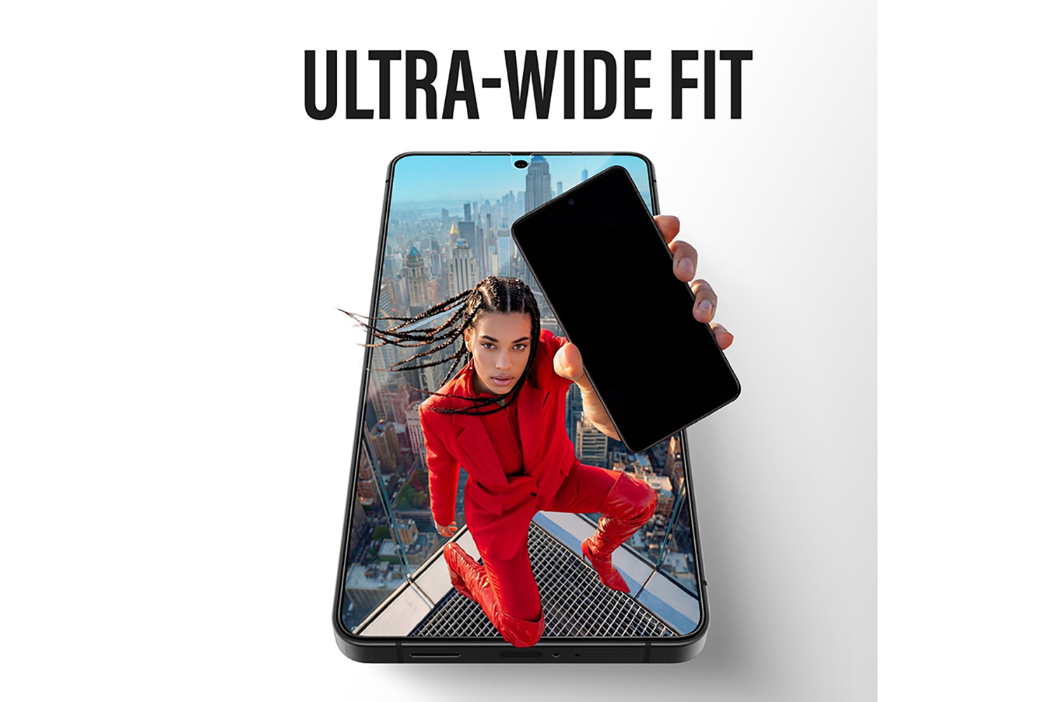 The screen protector is Ultra-Wide Fit, which means that it covers the front surface of your phone, providing a complete and crystal-clear view of your screen while still leaving a little room around the edges for a PanzerGlass case. If you want 360-degree phone protection, combine the screen protector and case with a PanzerGlass PicturePerfect or Hoops camera lens protector.
