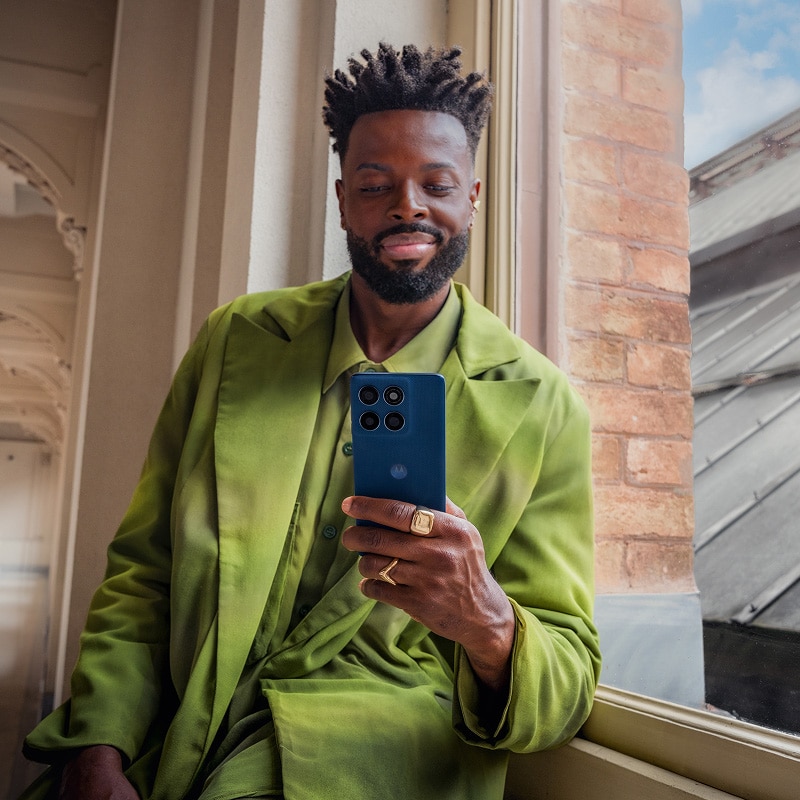 Say hello to effortless, share-ready selfies with the moto ai-powered 50MP front camera and Quad Pixel sensor.