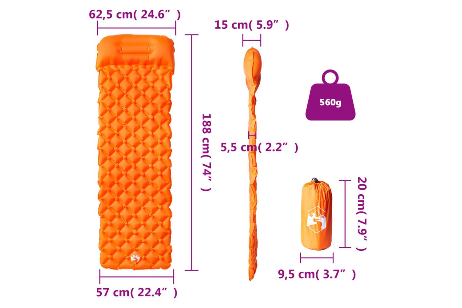 - Inflated dimensions: 188 x 62.5 x 5.5 cm (L x W x T)