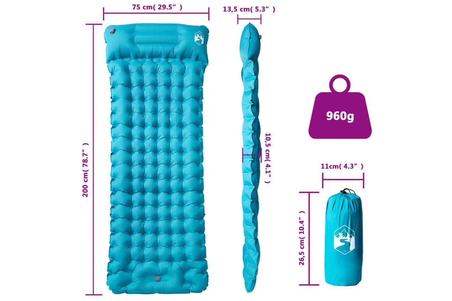 - Comfortable: The self inflating camping mat has a thickness of 10,5 cm to isolate you from the cold, damp, and uneven ground. It also has an integrated pillow to help relieve neck pressure.