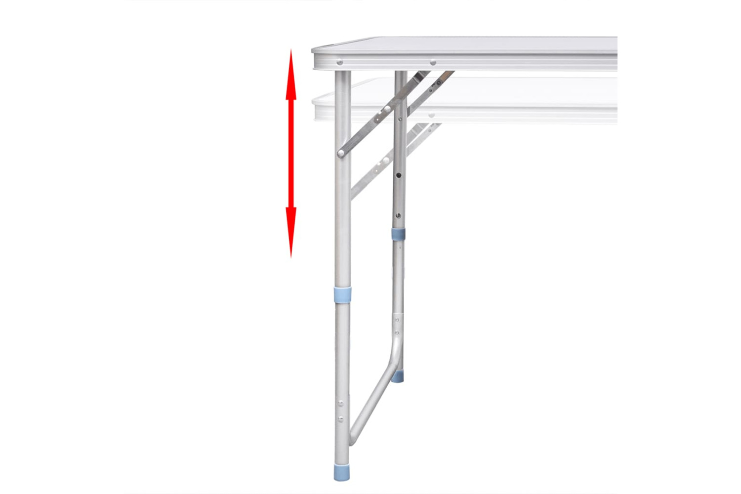 This foldable camping table with practical carrying handle will come in handy in kitchens, on patios, in gardens, and on picnics or camping trips. The table height can be adjusted to 55 cm, 62 cm and 70 cm.