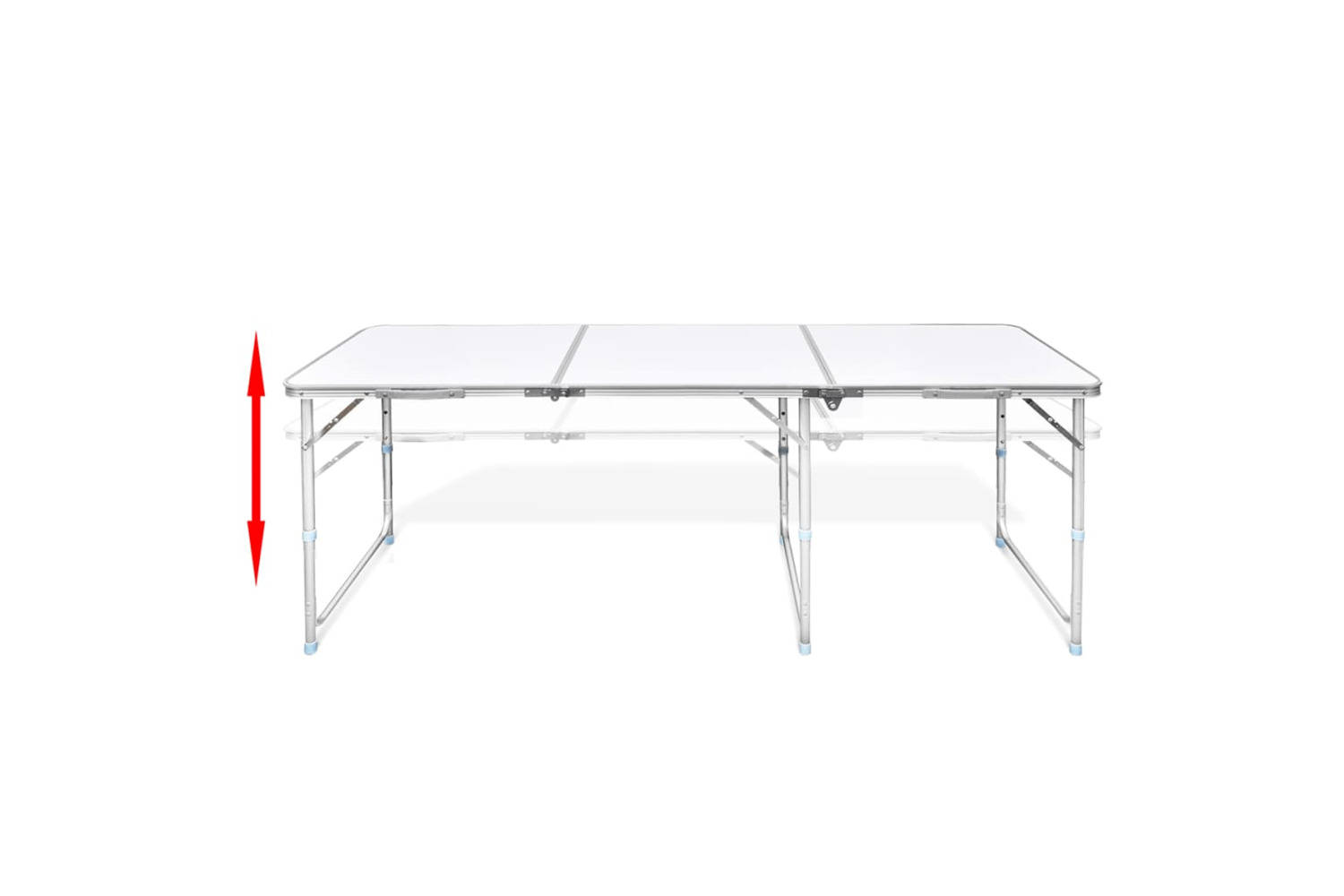 This foldable camping table with practical carrying handle will come in handy in kitchens, on patios, in gardens, and on picnics or camping trips. The table height can be adjusted to 55 cm, 62 cm and 70 cm.