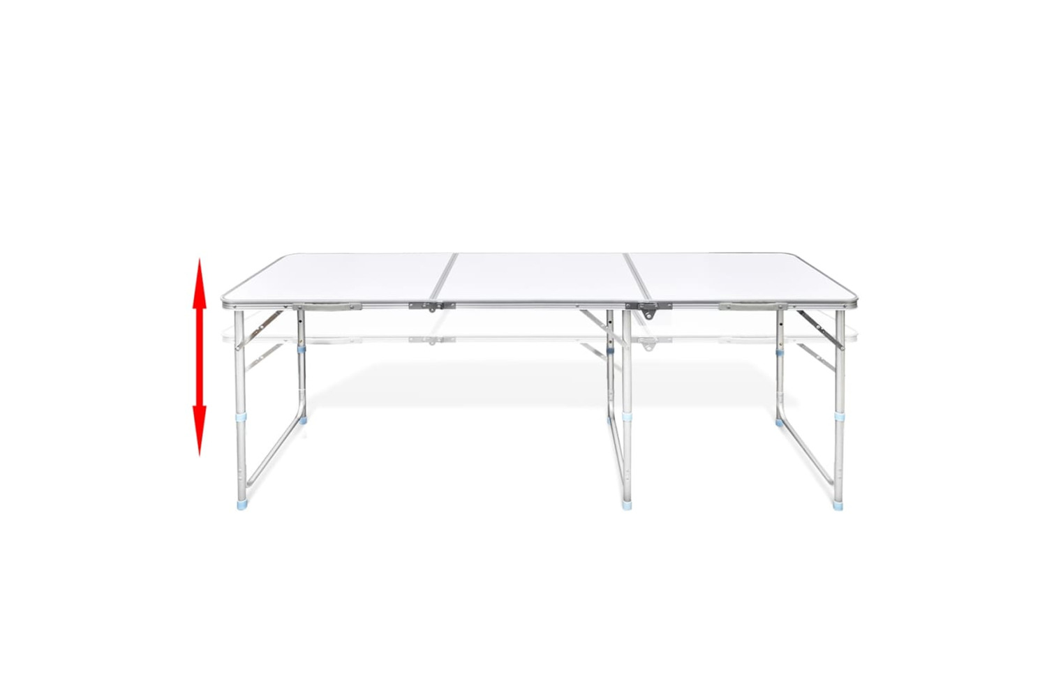 The camping table set is light in weight. The carrying handle makes it very easy to bring the table with you when going out to have a picnic or camping trip. The table height can be adjusted to 55 cm, 62 cm and 70 cm. Thanks to the sturdy structure, this camping table has a high load capacity up to 30 - 50 kg. Thanks to the metal frame and the robust MDF tabletop, the set is highly stable and durable.
