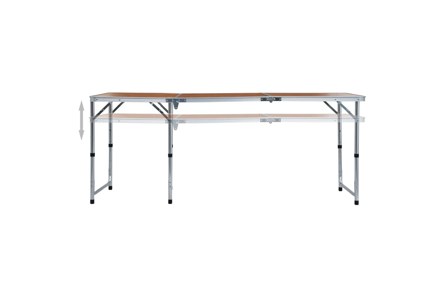 This foldable camping table with practical carrying handle will come in handy in kitchens, on patios, in gardens, and on picnics or camping trips. The table height can be adjusted to 55 cm, 62 cm and 70 cm.