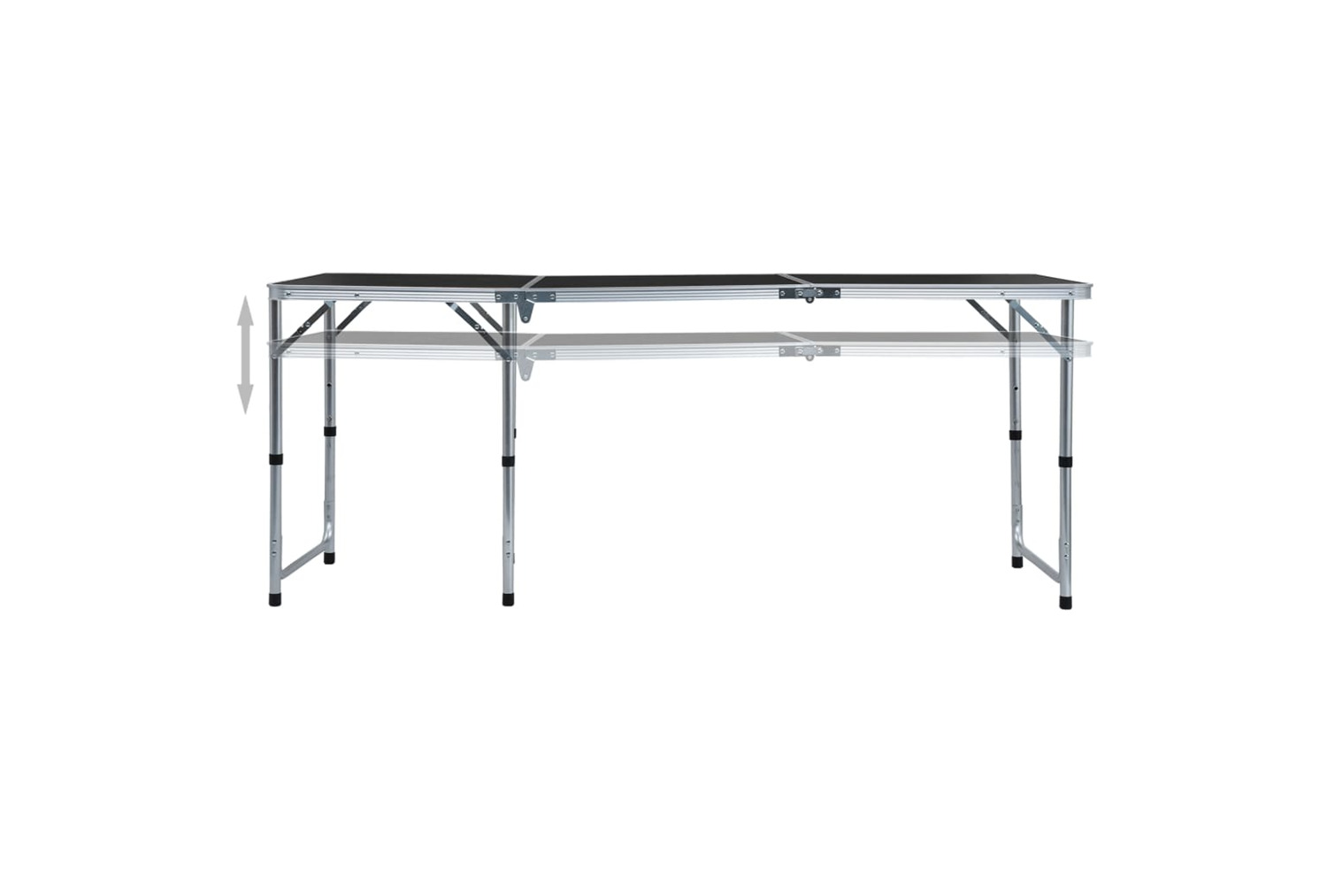 This foldable camping table with practical carrying handle will come in handy in kitchens, on patios, in gardens, and on picnics or camping trips. The table height can be adjusted to 55 cm, 62 cm and 70 cm.
