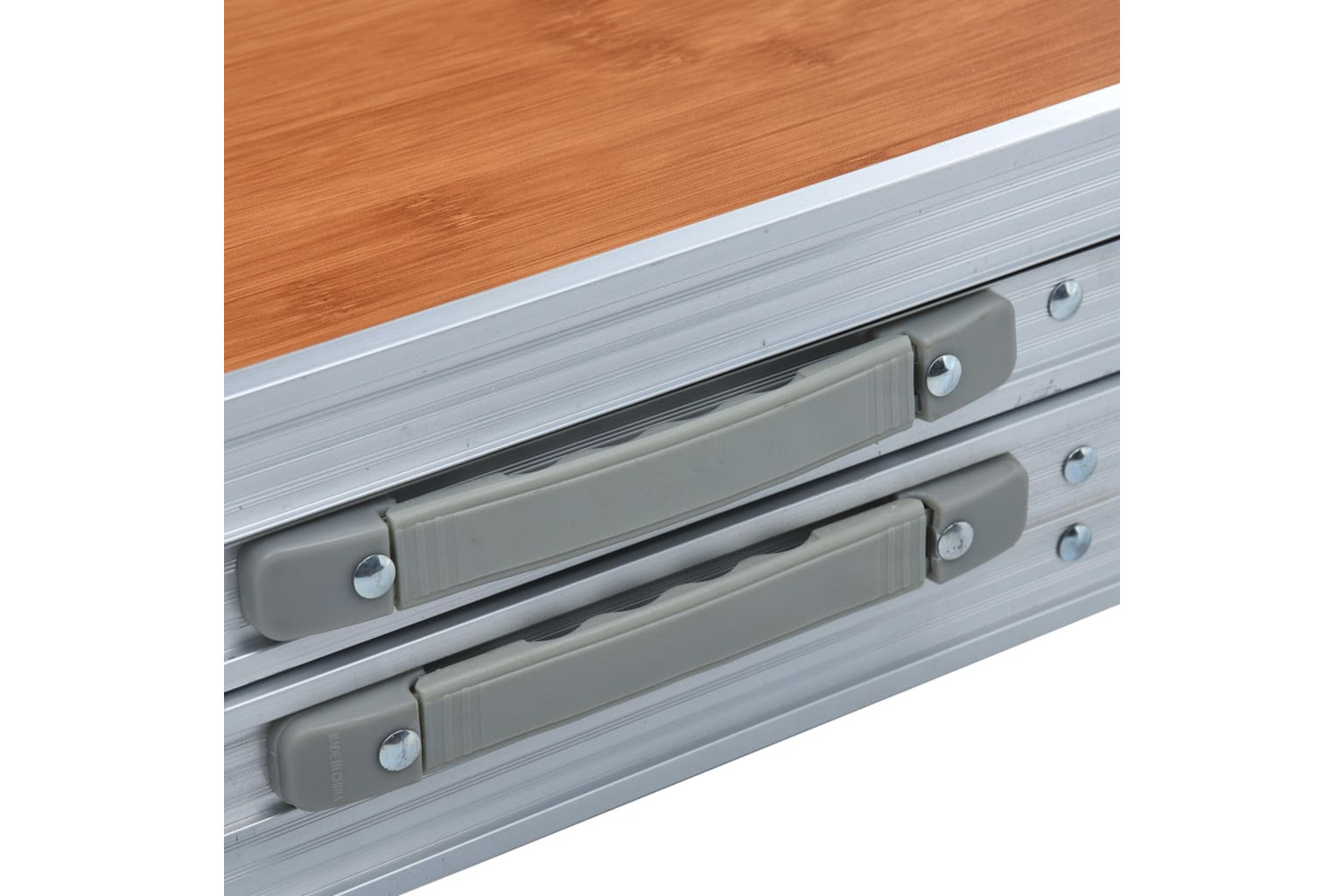 The camping table is light in weight. Thanks to the folding design, this camping table is easy to transport and can be stored away quickly when not in use. The carrying handle makes it very easy to bring the table with you when going out to have a picnic or camping trip. Thanks to the sturdy structure, this camping table has a high load capacity of up to 30 - 50 kg. Thanks to the metal frame and the robust MDF tabletop, it is highly stable and durable.