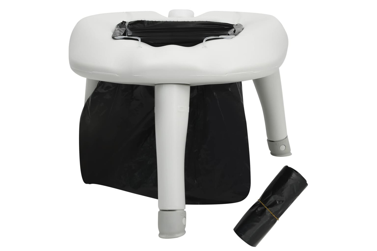 This camping toilet is made of strong and durable plastic with a capacity of up to 200 kg. The seat is reasonably wide. Thanks to its three-legged construction, the folding toilet is firmly fixed, even in the forest and in meadows. The water can be filled into the seat ring, keeping the toilet firmly in place. Disposable bags are included in delivery, which can be fixed securely to seat for worry-free use.