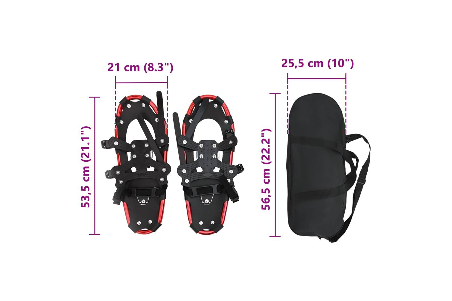 - Complete Set: The package comes with a pair of snowshoes, two adjustable hiking poles, and a carrying bag, making it ideal for those seeking a full snow trekking kit in one purchase. Each component is designed for ease of transport and storage, ensuring you are adventure-ready at all times.