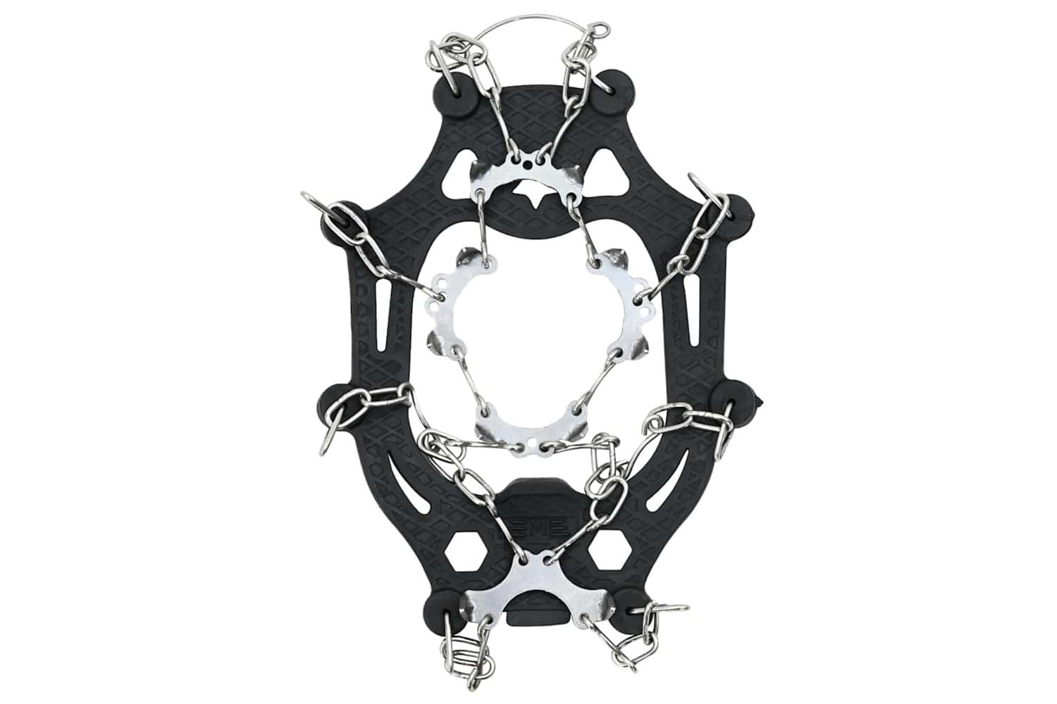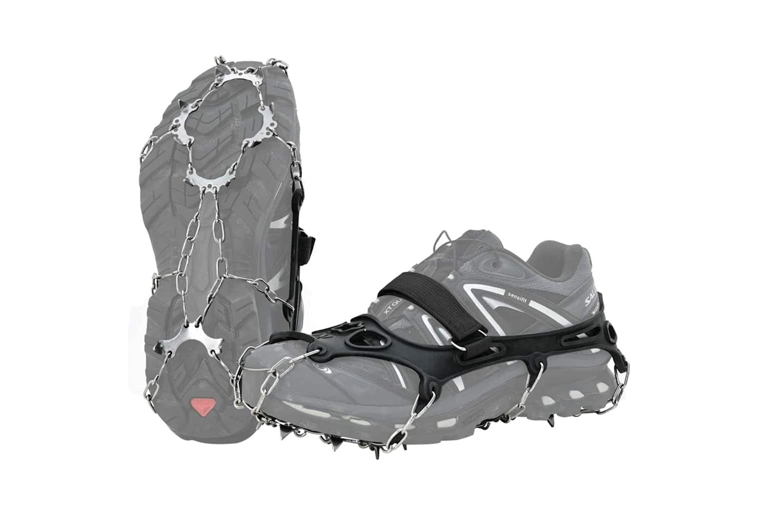 These practical ice cleats for shoes are designed to enhance traction during outdoor winter activities. Their form ensures reliable performance on icy surfaces, making them ideal for hiking on trails with compact snow or even quick urban commutes. Compact in design, these cleats come with an ergonomic structure that adapts seamlessly to most outdoor footwear for a secure fit. Whether you're ascending frosty hills or taking a winter mountain stroll, they ensure stability with ease. The cleats not only offer functionality but also exude a robust and sleek demeanor for the outdoor adventurer, dynamic trail runner, and the everyday walker. Thoughtfully constructed from thermoplastic elastomer combined with stainless steel components, these cleats are suited for extreme temperatures while providing a steady grip on slippery paths.