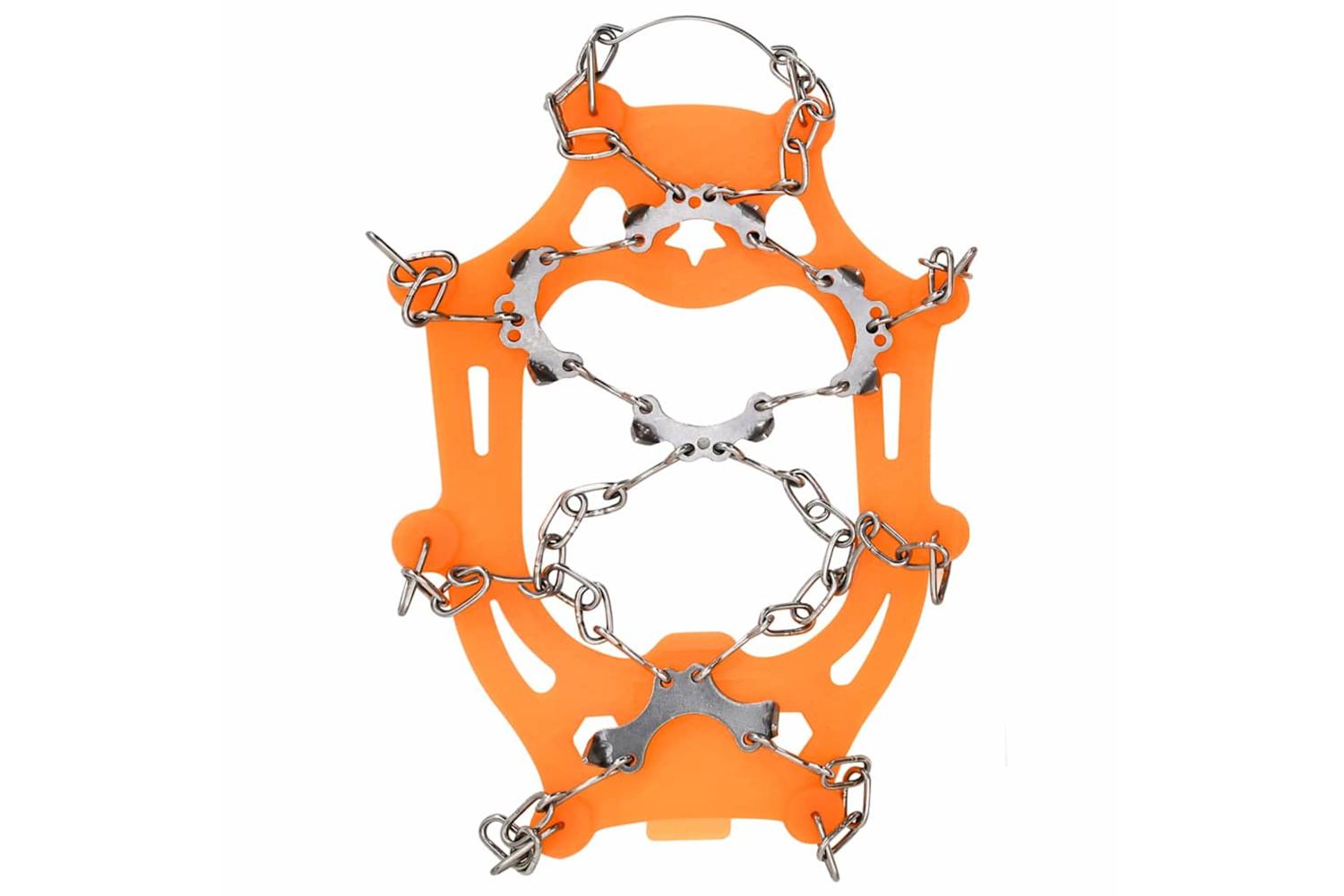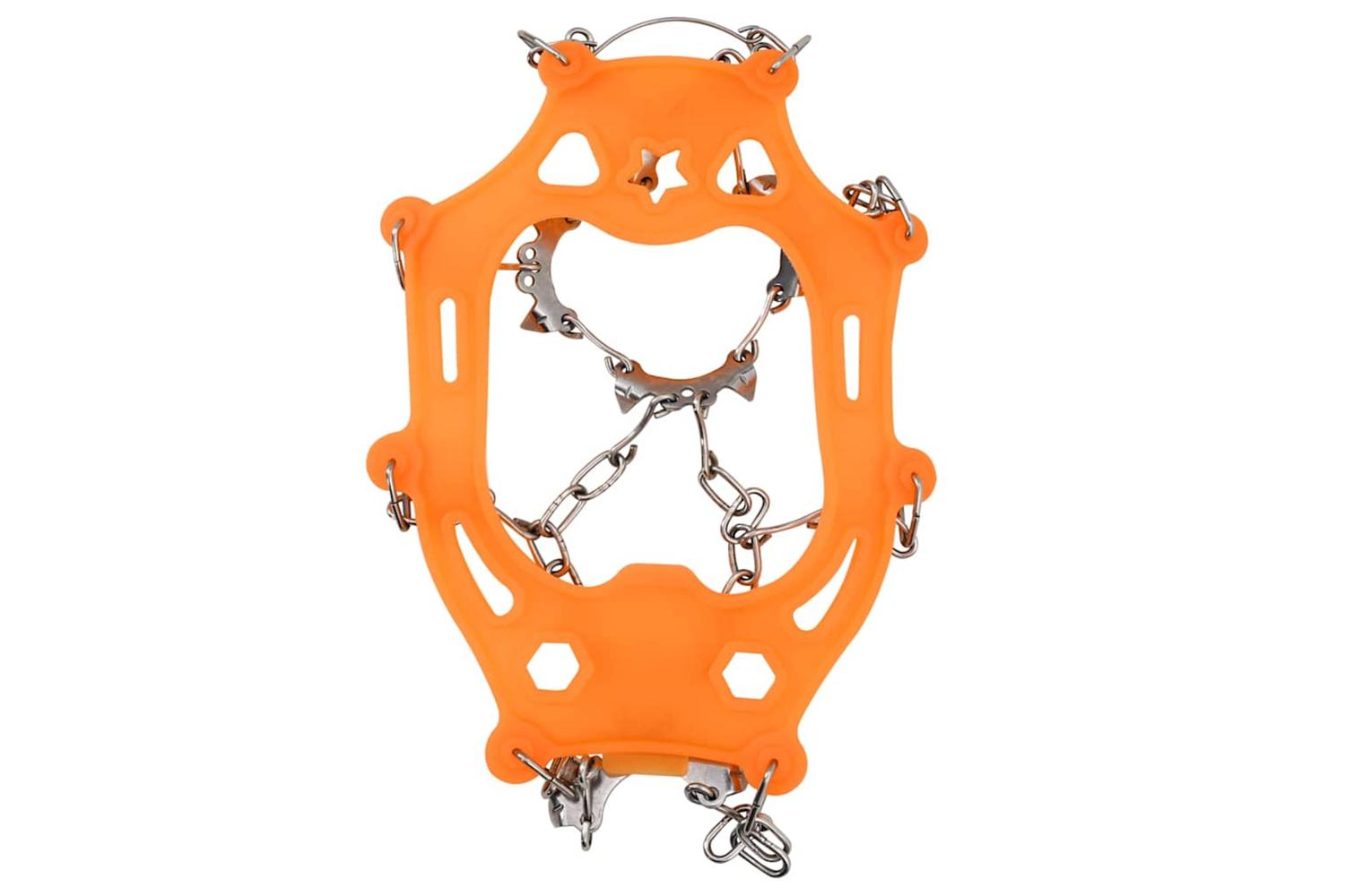 These practical ice cleats for shoes are designed to enhance traction during outdoor winter activities. Their form ensures reliable performance on icy surfaces, making them ideal for hiking on trails with compact snow or even quick urban commutes. Compact in design, these cleats come with an ergonomic structure that adapts seamlessly to most outdoor footwear for a secure fit. Whether you're ascending frosty hills or taking a winter mountain stroll, they ensure stability with ease. The cleats not only offer functionality but also exude a robust and sleek demeanor for the outdoor adventurer, dynamic trail runner, and the everyday walker. Thoughtfully constructed from thermoplastic elastomer combined with stainless steel components, these cleats are suited for extreme temperatures while providing a steady grip on slippery paths.