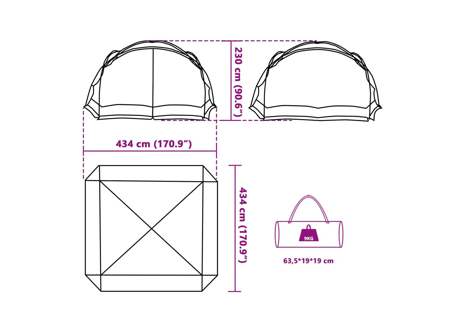 - Overall dimensions: 434 x 434 x 230 cm (L x W x H)