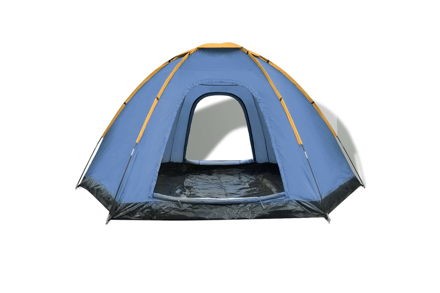 The flysheet and the PE floor will ensure your stay is dry and clean. The fibreglass frame structure adds to its sturdiness and durability but also its light weight. This tent has two entrances with mesh insect screens that allow for a better circulation and insect-free summer nights. This 6-person camping tent can be neatly packed away in the included carrying bag for easy storage and transport.