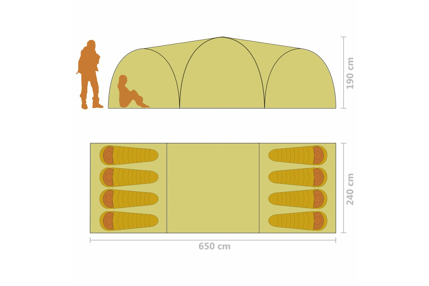 This camping tent has spacious room for up to 8 people with luggage. It is perfect for family camp out with kiddos or weekend away with friends.