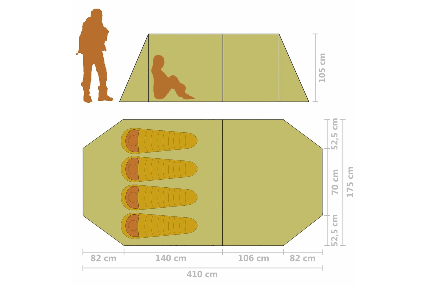 Note: This 4-man tent sleeps four persons, but we'd recommend this tent for a pair of campers with their gear so you will have the space and comfort you need.