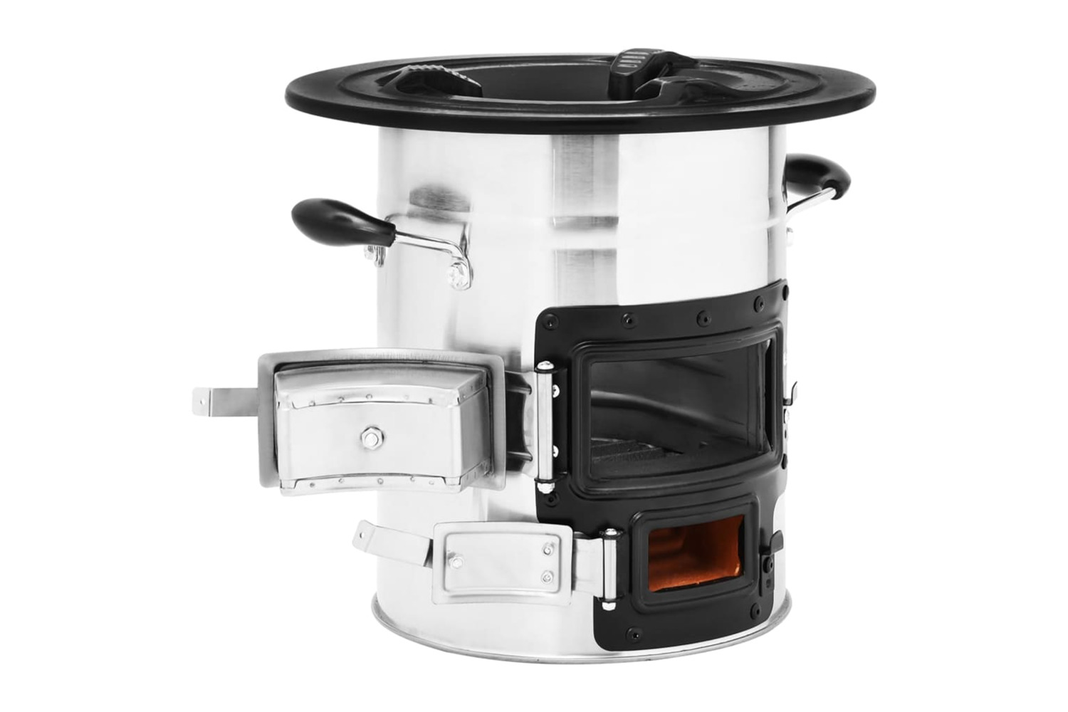 This camping wood stove serves as a cooking utensil when you have outdoor activities while creating some extra warmth and a cosy atmosphere when it gets colder.