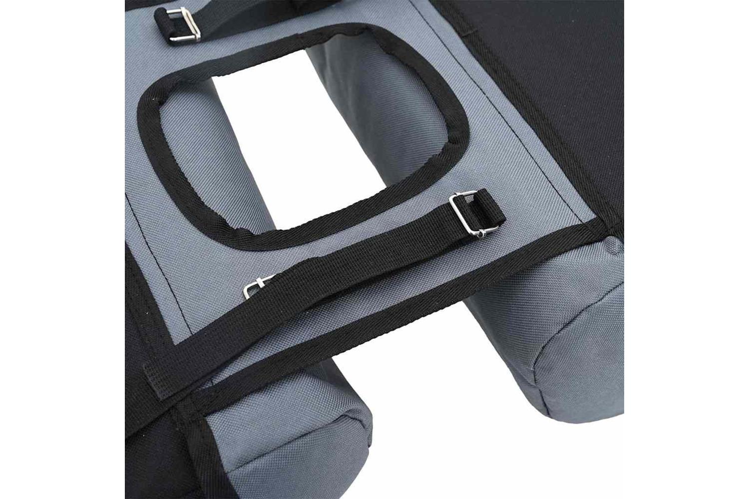 The Contemporary Double Bicycle Bag offers a sleek and modern solution for cyclists seeking both functionality and style. Crafted primarily from polyester, this rectangular accessory is perfect for urban adventures or scenic countryside rides, complementing any bicycle with its elegant grey and black color scheme. Its practical design ensures that cyclists can carry all necessary items conveniently while maintaining a stylish appearance. The water-resistant quality further adds to its durability, ensuring that all contents remain safe and dry during unpredictable weather conditions.