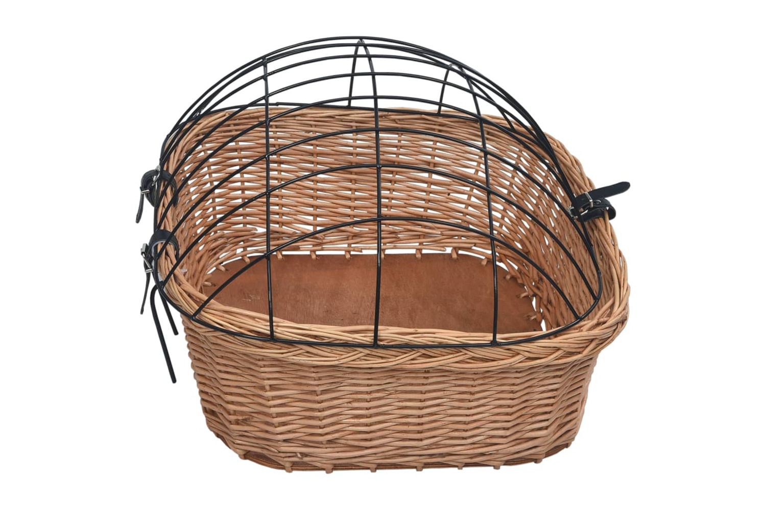 Made of natural willow, the basket is tear resistant for long term use, and will also give your tiny friends the chance to scratch to their heart's content. The natural wood material is chemical free. The sturdy cover, crafted from solid iron, ensures groceries or pets stay still during your trips.