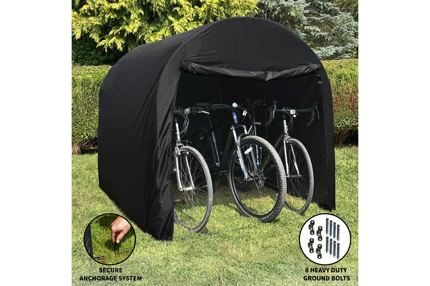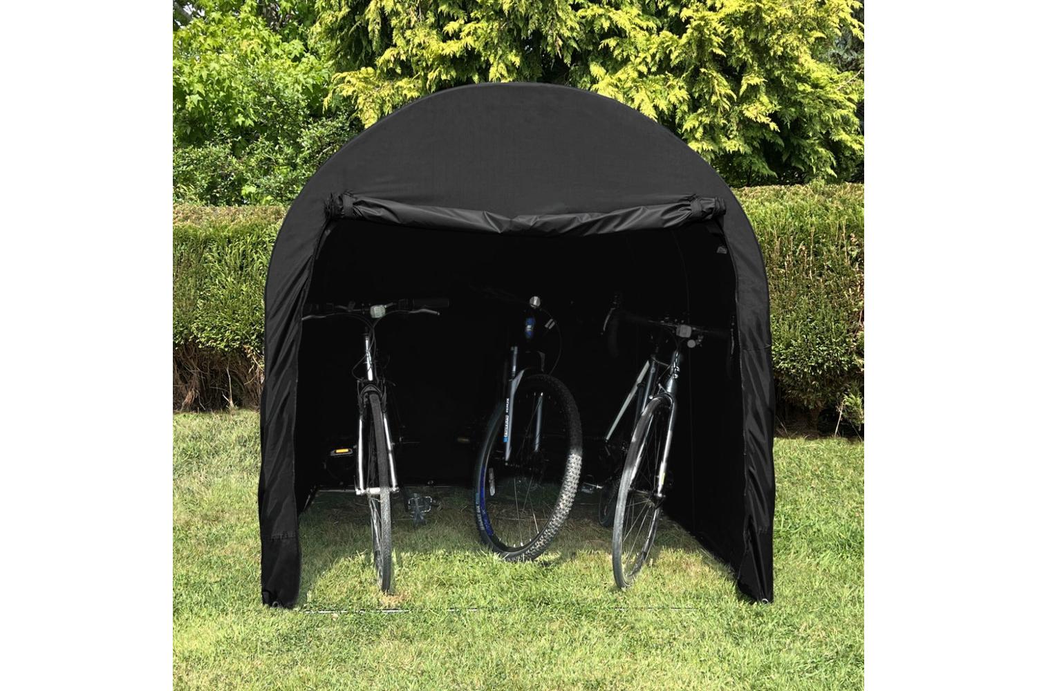 The MONSTERSHOP 29596 Large Bike Tent is a haven for your bike providing the ultimate convenience and protection. This durable bicycle cover is built with a black powder coated steel frame, a signature of MONSTERSHOP. Featuring three main struts, the curved framework is strategically designed to encourage rain and snow to simply glide off, ensuring your ride remains dry throughout the season.
