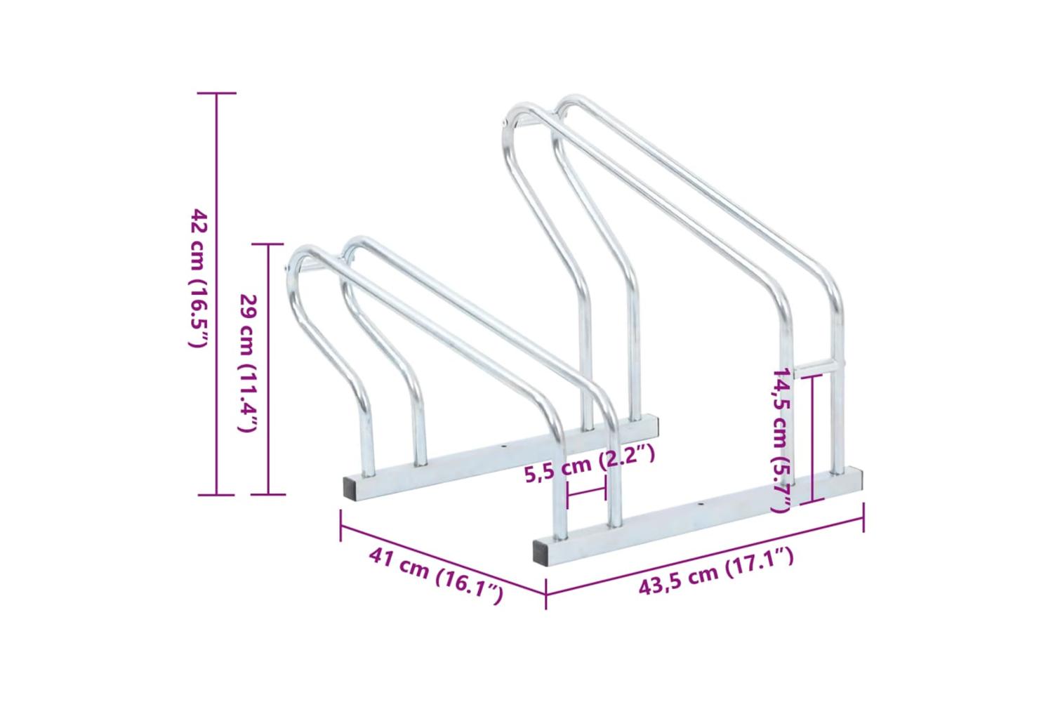 - Bicycle rack tube spacing: 55 mm