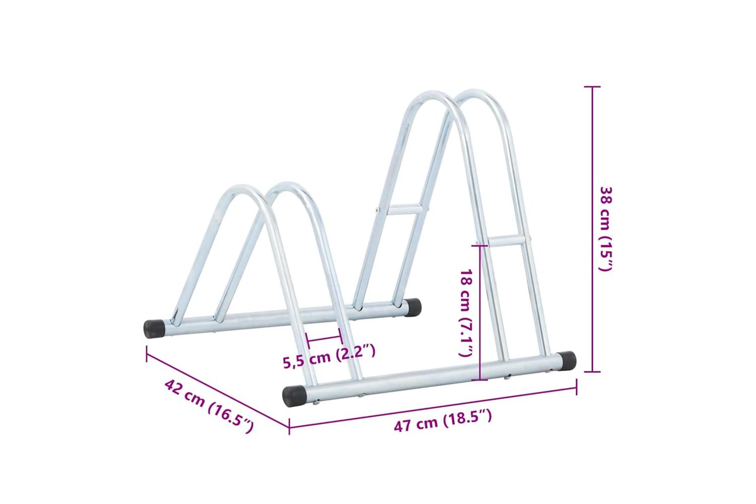 - Bicycle rack tube spacing: 55 mm