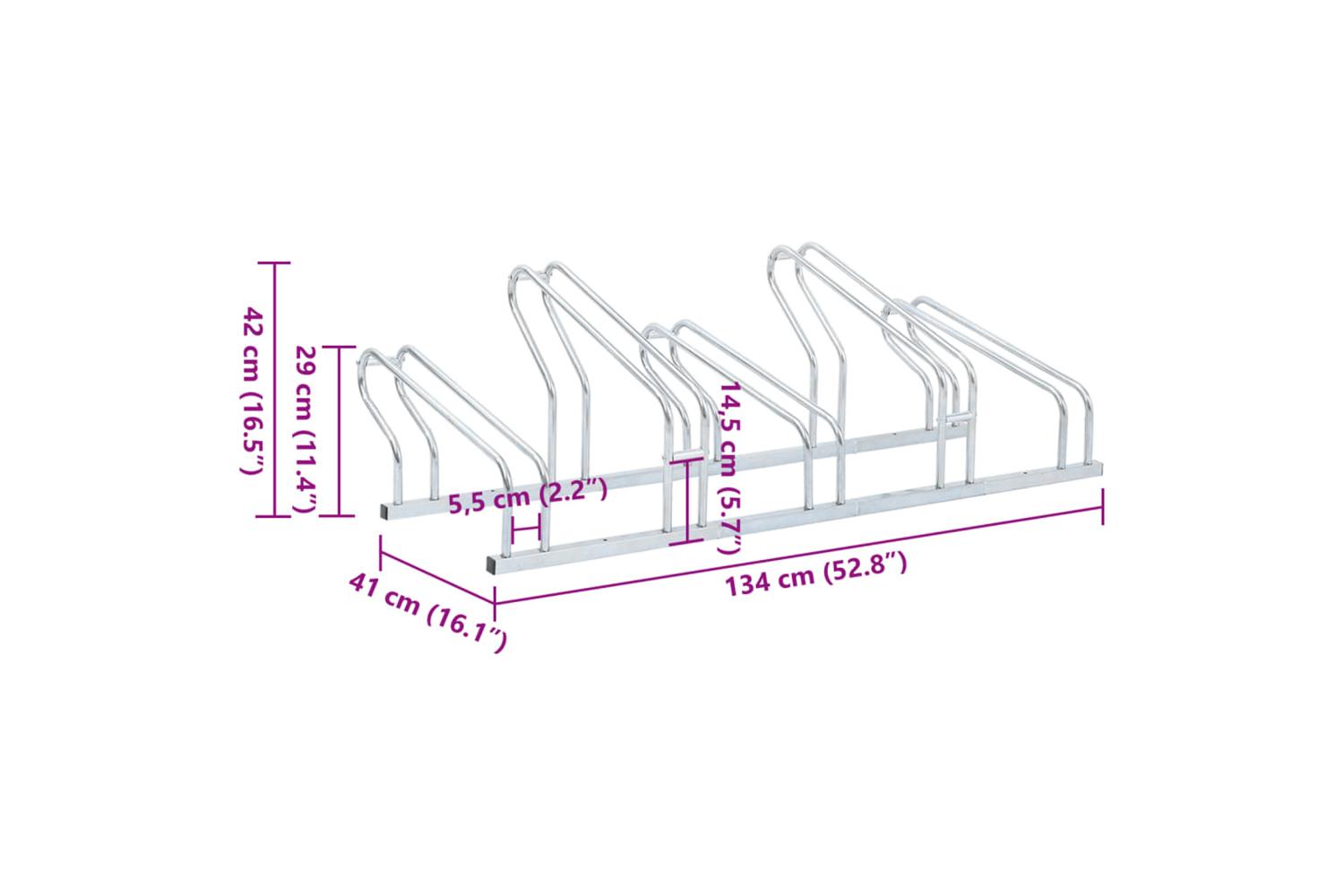 - Space-saving: This bicycle stand has a high-low wheel design and accommodates five bikes without handlebar tangling, optimising space for efficient parking.