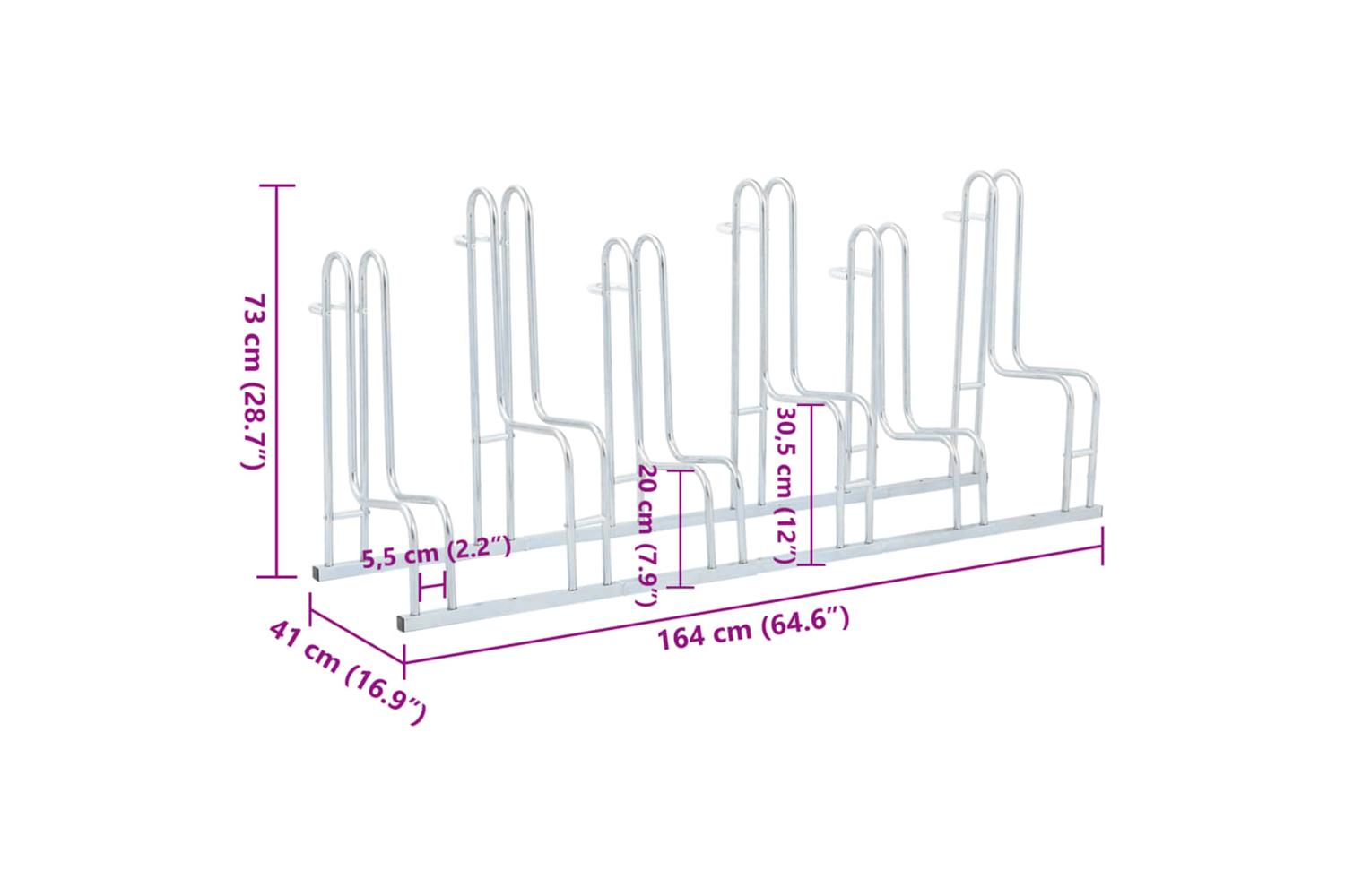 - Bicycle rack tube spacing: 55 mm