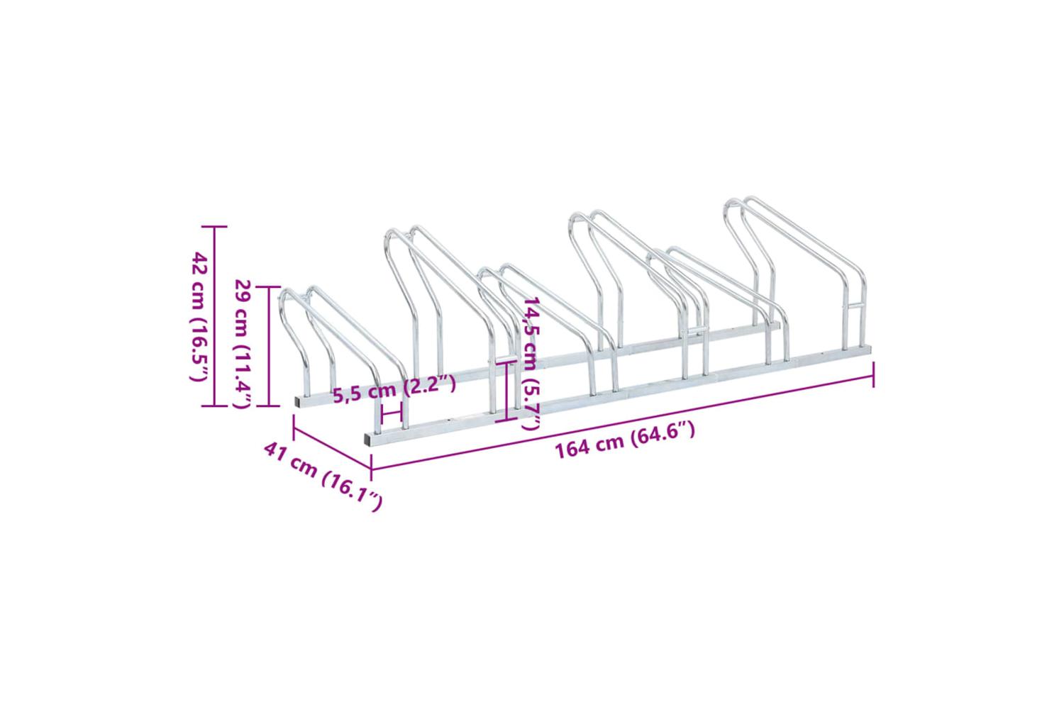 - Bicycle rack tube spacing: 55 mm