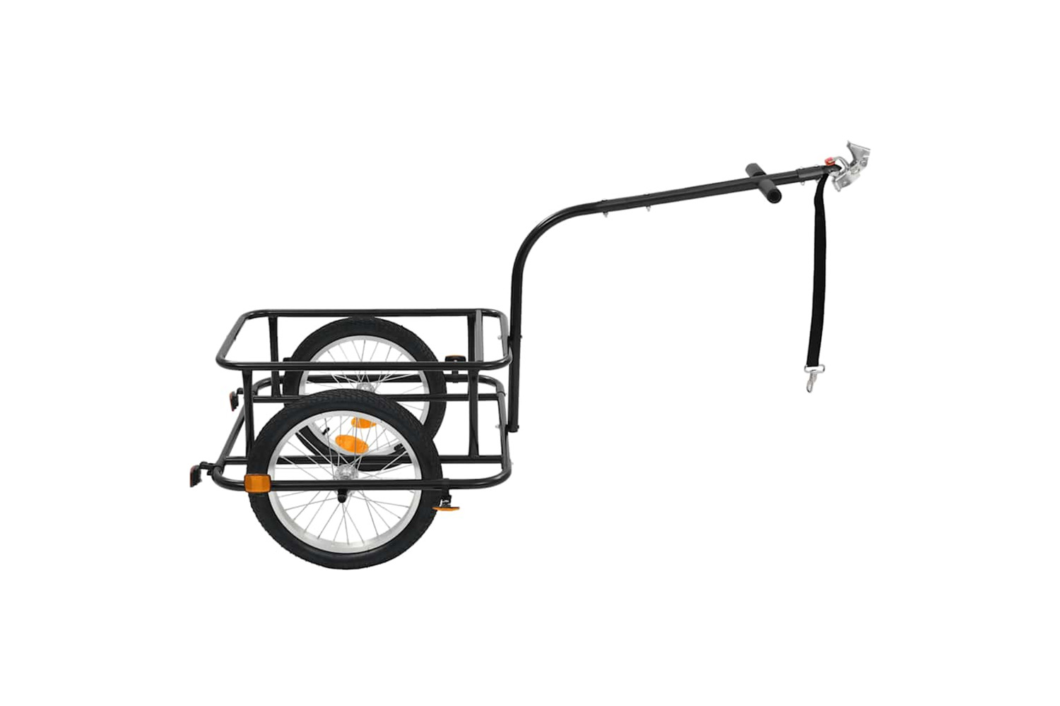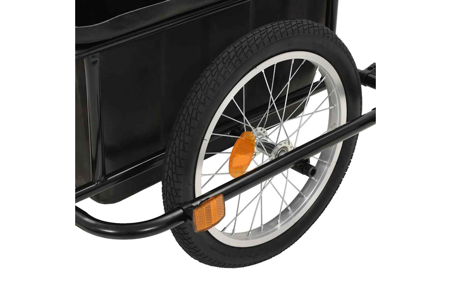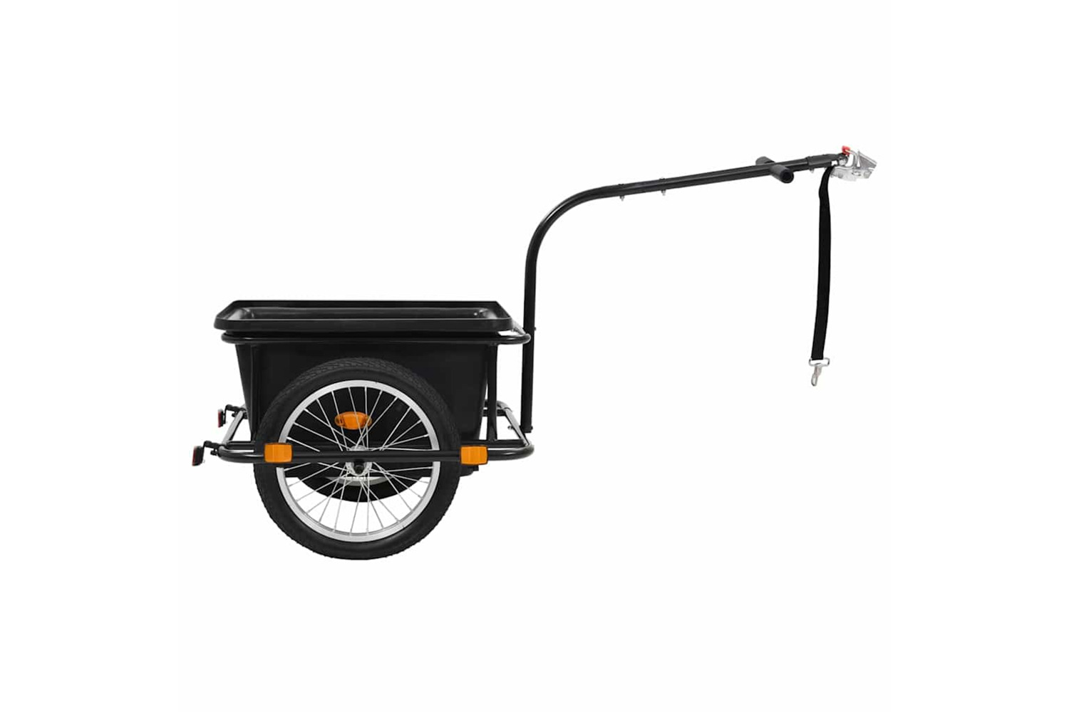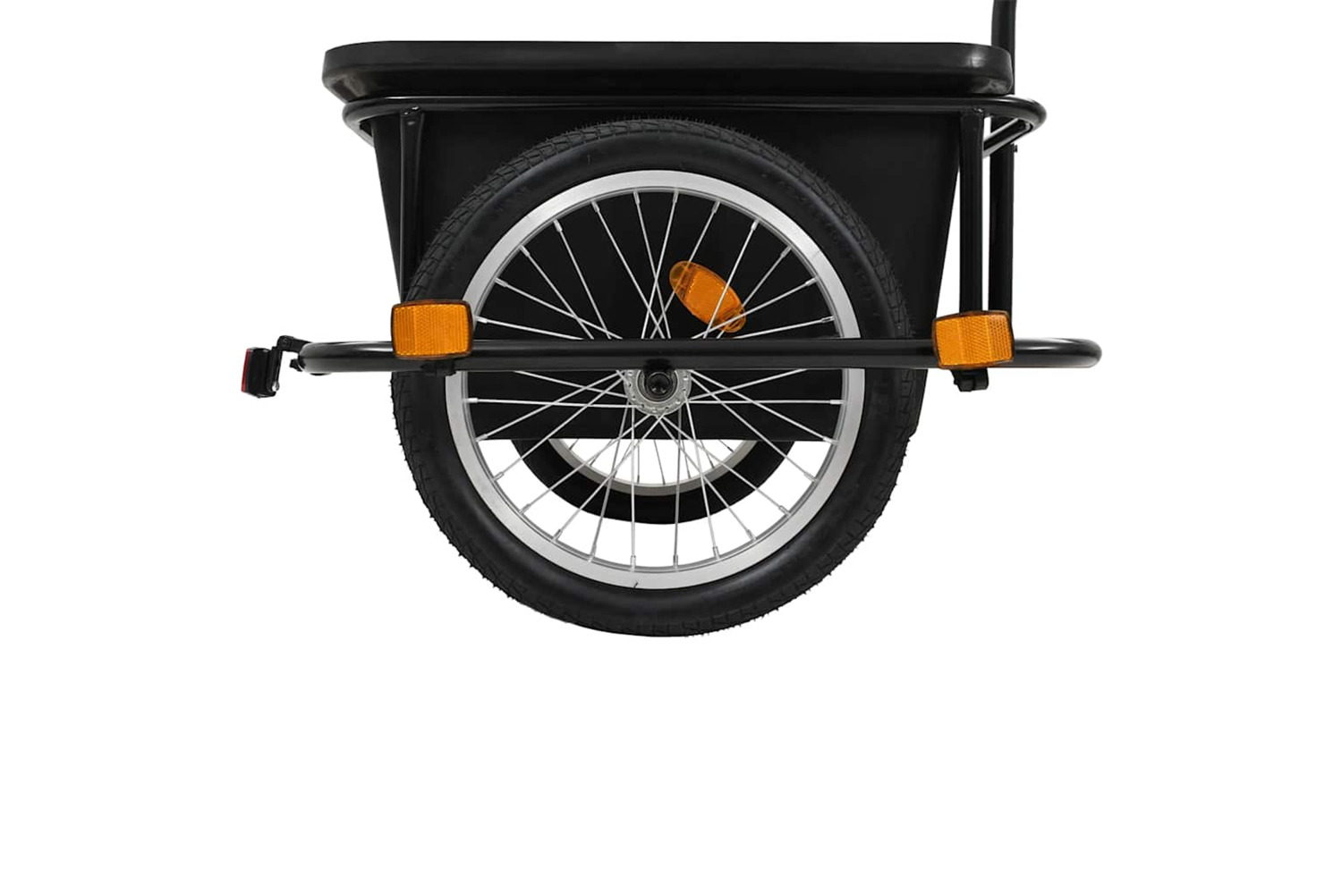 This bike cargo trailer is made of steel which makes it very sturdy and durable. Meanwhile, it has a ball coupling design for quick attachment to the bike. Equipped with 2 handles on the drawbar, the cargo trailer can also be used as a hand wagon. The high-visibility coloured reflectors are designed to add for improved safety. Thanks to the removable transportbox with a large load capacity of 150 kg, the cargo trailer is ideal for carrying groceries, camping gear, sporting goods or whatever else you need to take with you.