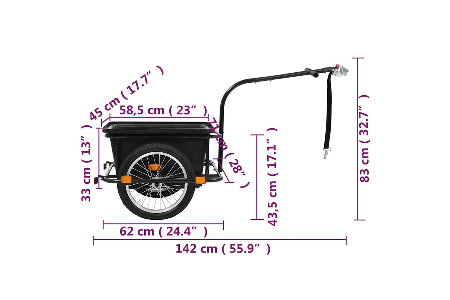 - Overall size with drawbar: 142 x 71 x 83 cm (L x W x H)