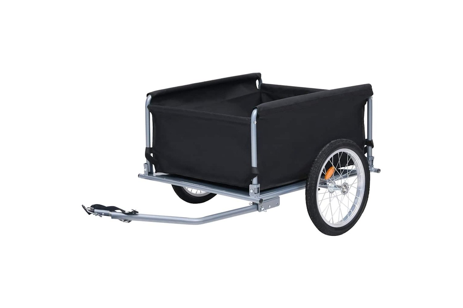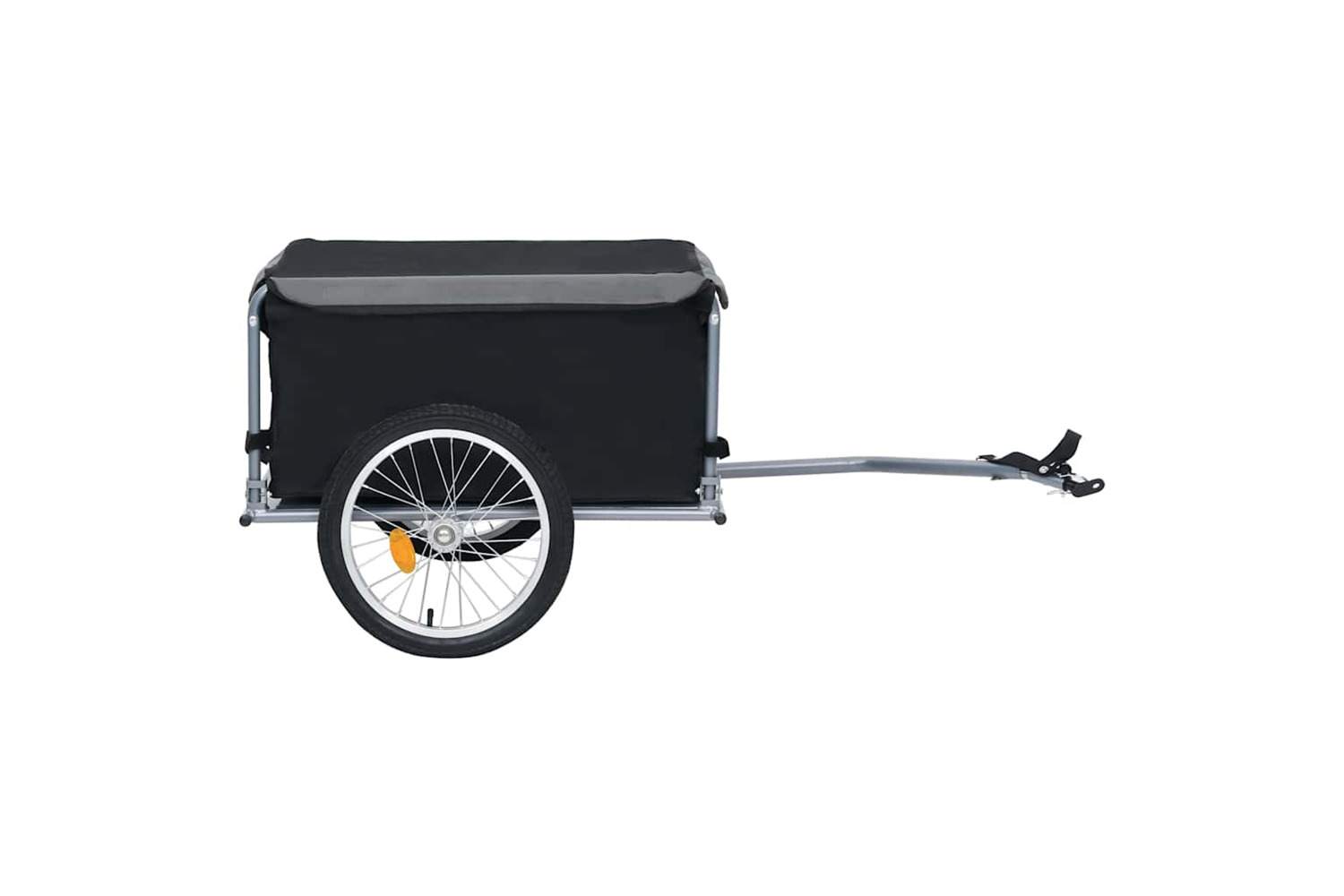 This bike cargo trailer's frame is made of steel which makes it very sturdy and durable. Thanks to 100% polyester fabric, the cargo compartment with included cover is water resistant. Meanwhile, it has a ball coupling design for quick attachment to the bike. The foldable drawbar and quick-release tyres make this trailer a real space-saver when it comes to storage as well as transportation. The high-visibility coloured reflectors are designed for extra safety. The cargo compartment is easily removable due to the hook and loop fasteners.
