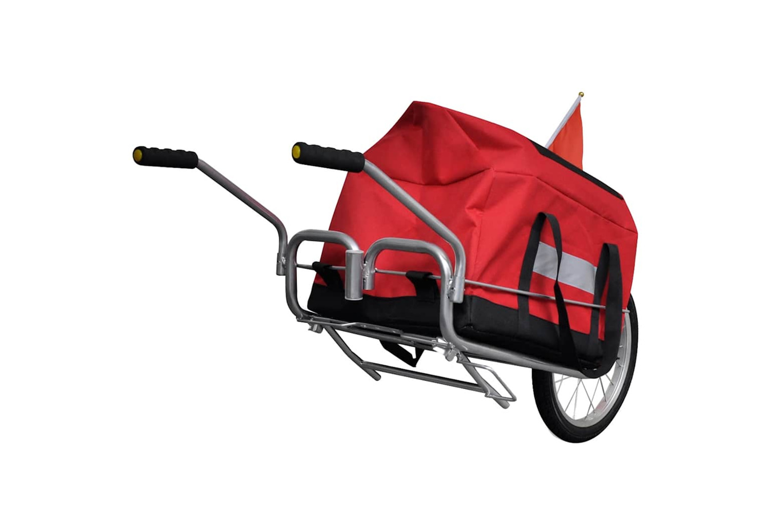 The 2-in-1 bike trailer, featuring a robust one-wheel structure, is perfect for carrying a wide range of goods with ease.