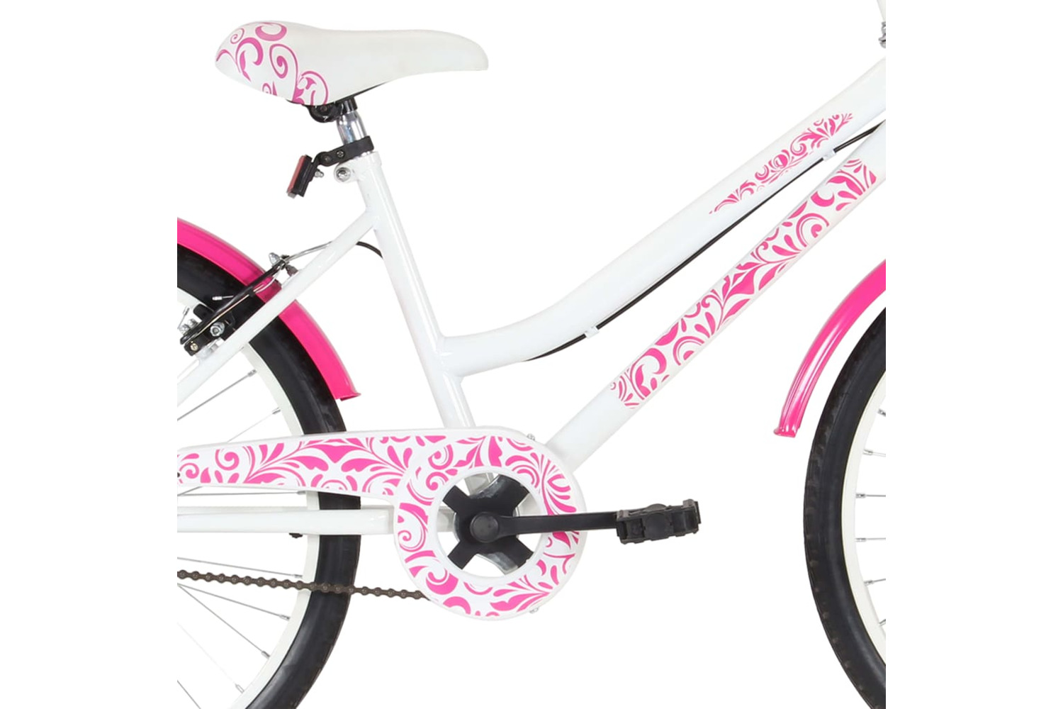 The kids' bicycle comes with a chain guard to prevent the chain from entrapping rider's feet and clothes. With decorated cute prints, this bicycle will surely win your child's heart.
