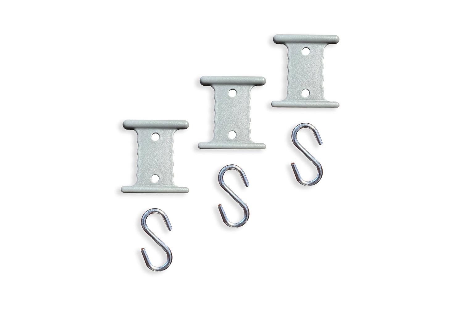 Enhance the functionality of your awning rail with this special set of 6 awning rail hangers, featuring both 6mm and 4mm sizes that slot effortlessly into your rail. Experience the satisfaction of organising your campsite essentials neatly, whether it's hanging lights, decorations or clothing, these versatile hangers are a game-changer.