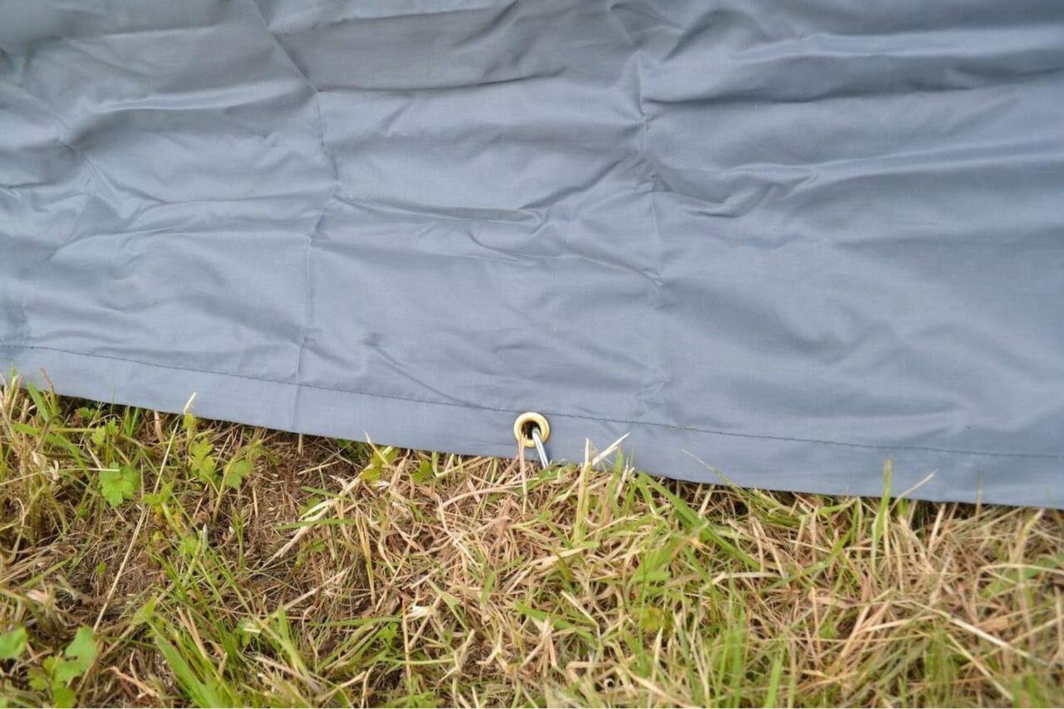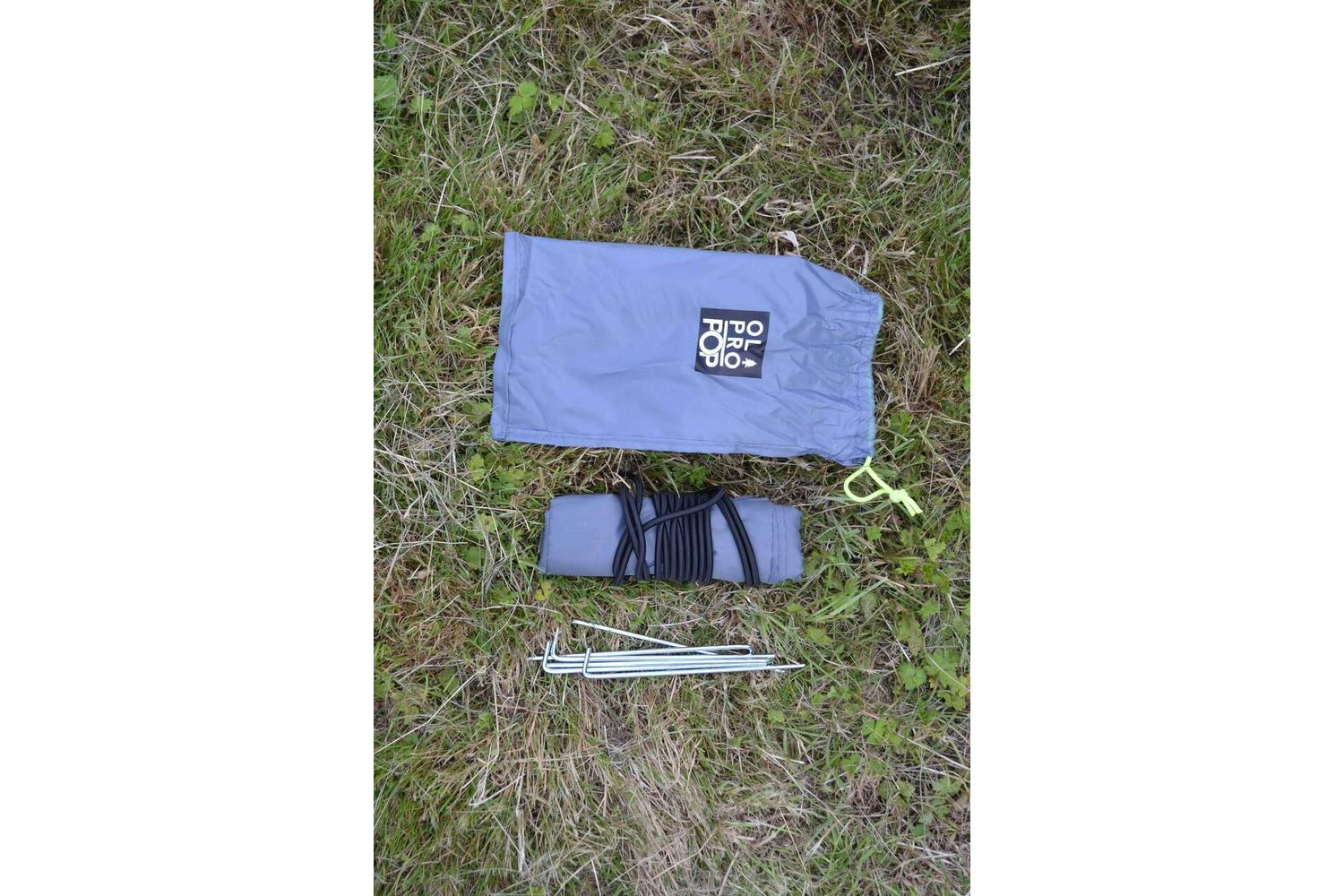 The OLPRO Draught Skirt is a comprehensive combination of a draught skirt and excluder, ready to employ with six pegs and six sturdy metal eyelet points for straightforward setup. Crafted for ease, all you need do is tie a loop in the elasticated cord, loop it around the wheel and you are set to go!